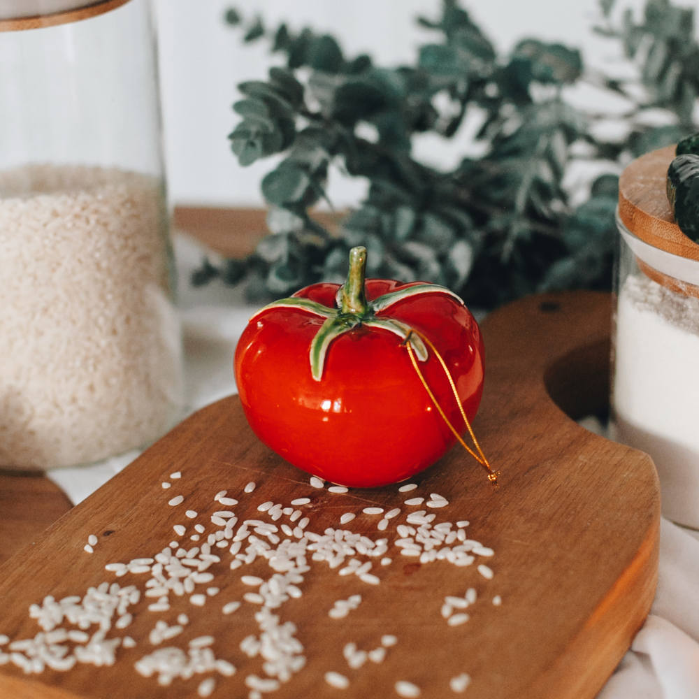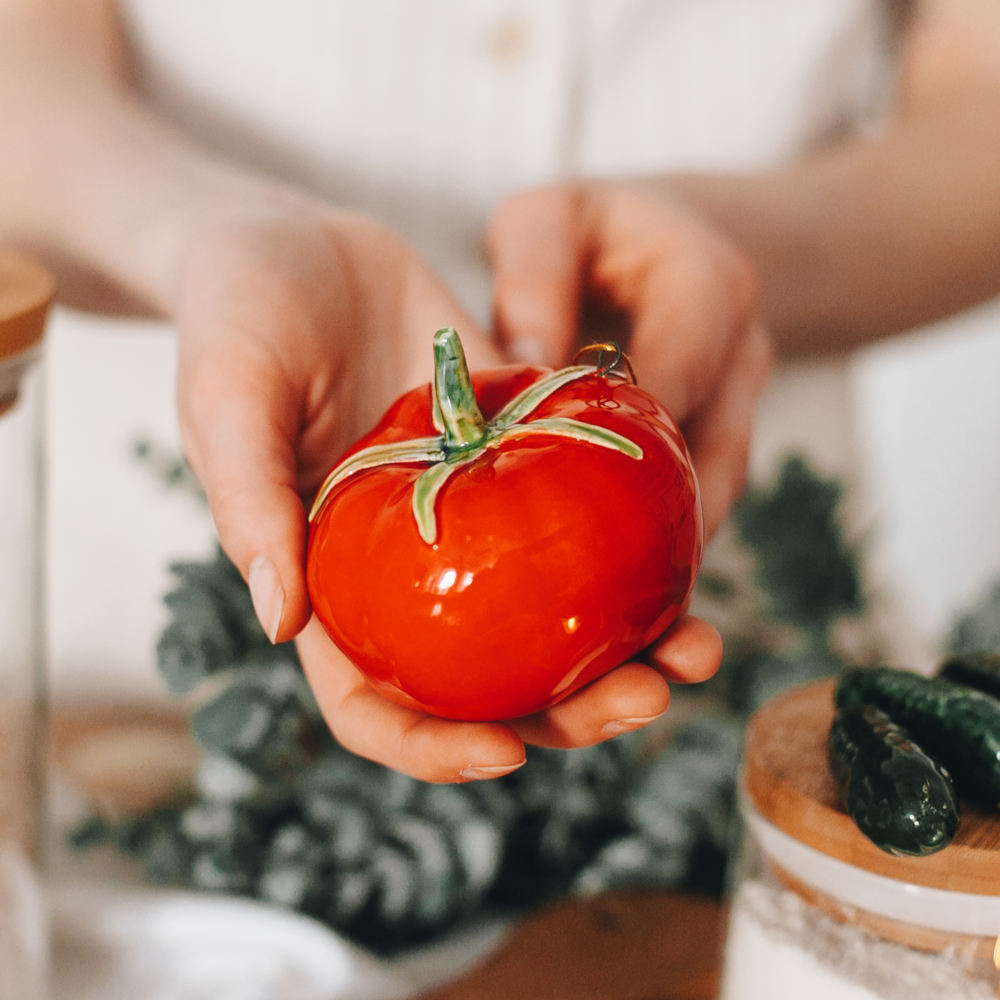 Изделие ручной работы представляет томат в натуральную величину. Художник воспользовался всей роскошной палитрой современных керамических глазурей, и вот перед нами настоящий “Сеньор Помидор”, он выглядит ярко, и совсем как настоящий. Помидор в переводе с французского языка означает: «Яблоко любви». Помидор всегда был символом человеческого сердца. Данное изделие станет украшением вашего интерьера, будет интересным подарком. Соберите всю коллекцию ярких и красивых фруктов и овощей. Блюдо с фруктами или овощами может быть использовано для создания эффектных интерьеров в кафе, ресторанах, барах или как модель на уроках рисования.