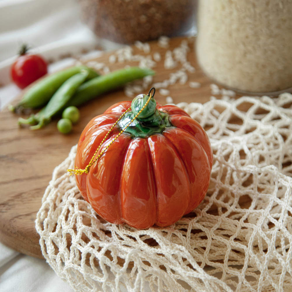 Подвес “Тыква” изготовлен в технике майолика, украшен ручной художественной росписью и входит в коллекцию украшений “Фрукты и овощи”. Художник воспользовался всей роскошной палитрой керамических глазурей, благодаря чему изделие выглядит совершенно как настоящее. Тыква считается женским символом, прародительницей всего живого, источник жизни и возрождения. Подвес станет отличным украшением для кухни, добавляя ей яркий акцент и создавая уютную атмосферу. А в новогодние праздники отлично впишется в праздничный декор, привнося в него нотку оригинальности. Его реалистичные детали создают ощущение, что он настоящий. Прекрасный подарок для друзей и близких, а также для ценителей керамических изделий ручной работы.