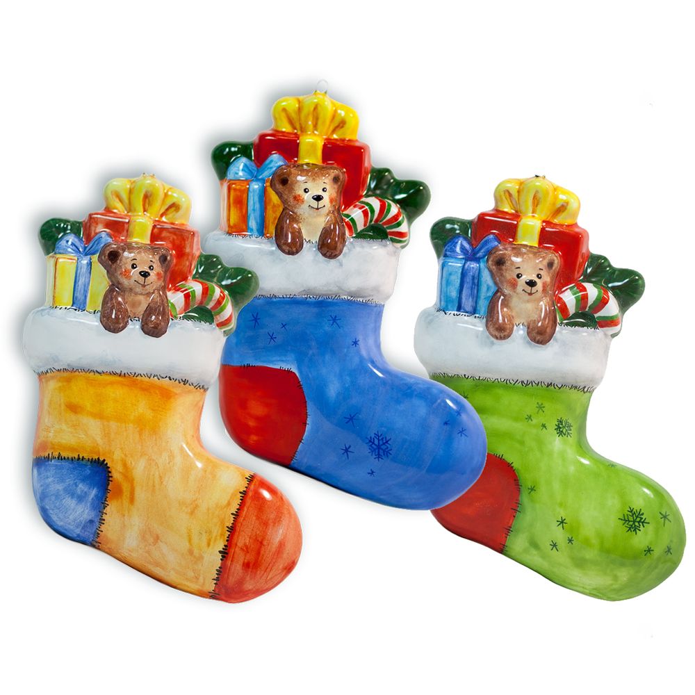 Эксклюзивное изделие ручной работы представляет собой плоский подвес с рельефной фигуркой разноцветного новогоднего носка с яркими подарками, игрушками и сладостями. Такая елочная игрушка будет замечательно смотреться, как на самой новогодней ели, так и в гирляндах, украшающих двери, лестницы, и, конечно в праздничных композициях, также будет прекрасным подарком к Новому году и Рождеству, принесёт радость, создаст настроение.