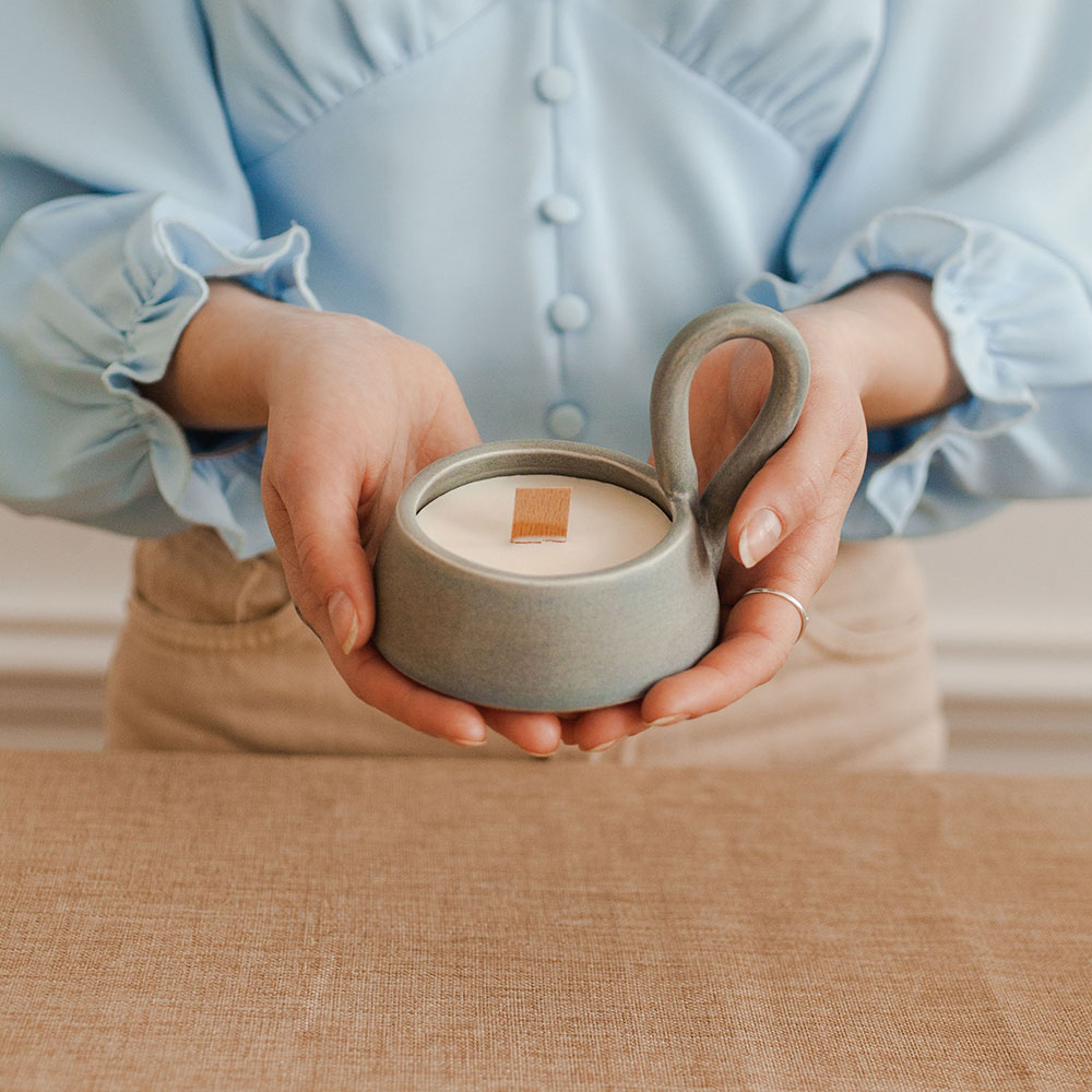 Это изделие ручной работы представляет собой подсвечник сделанный вручную гончарами мануфактуры. Для его создания мы используем безвредный кокосовый воск, деревянный фитиль. Его изящные аутентичные формы придают особый шарм.