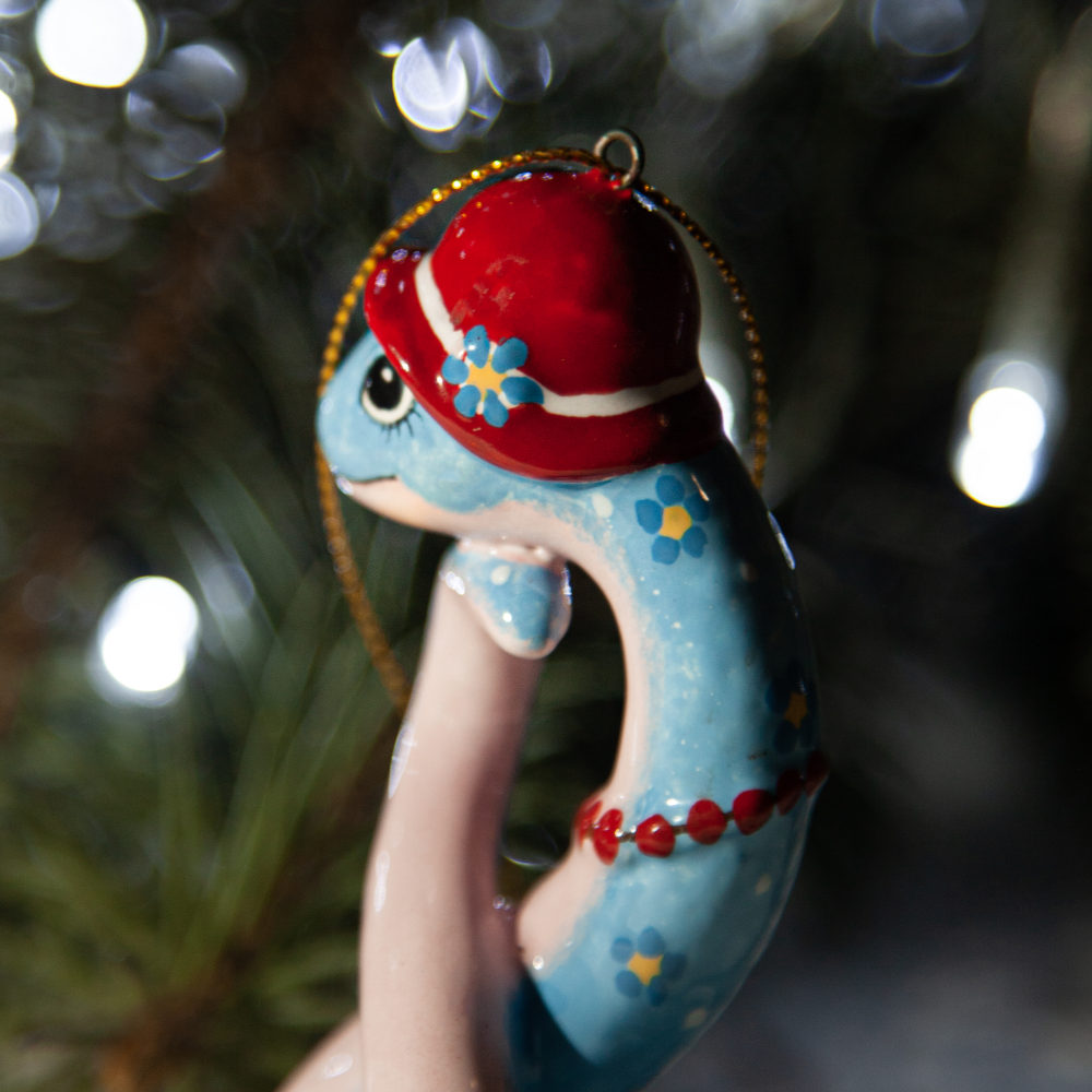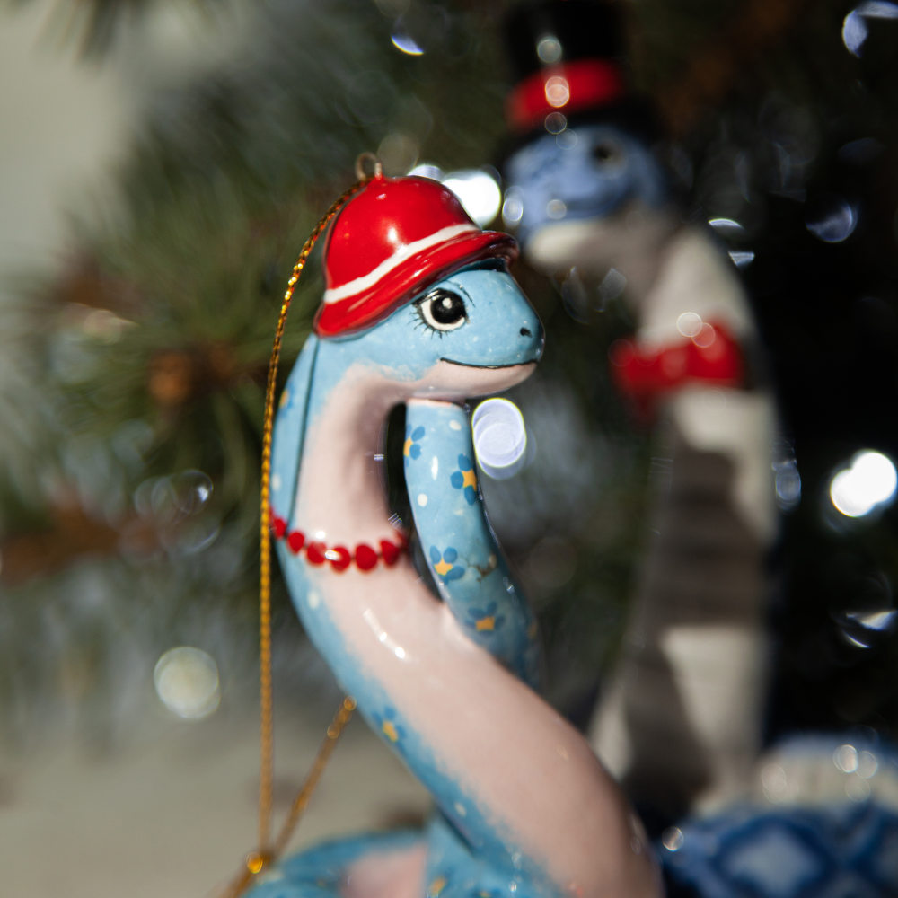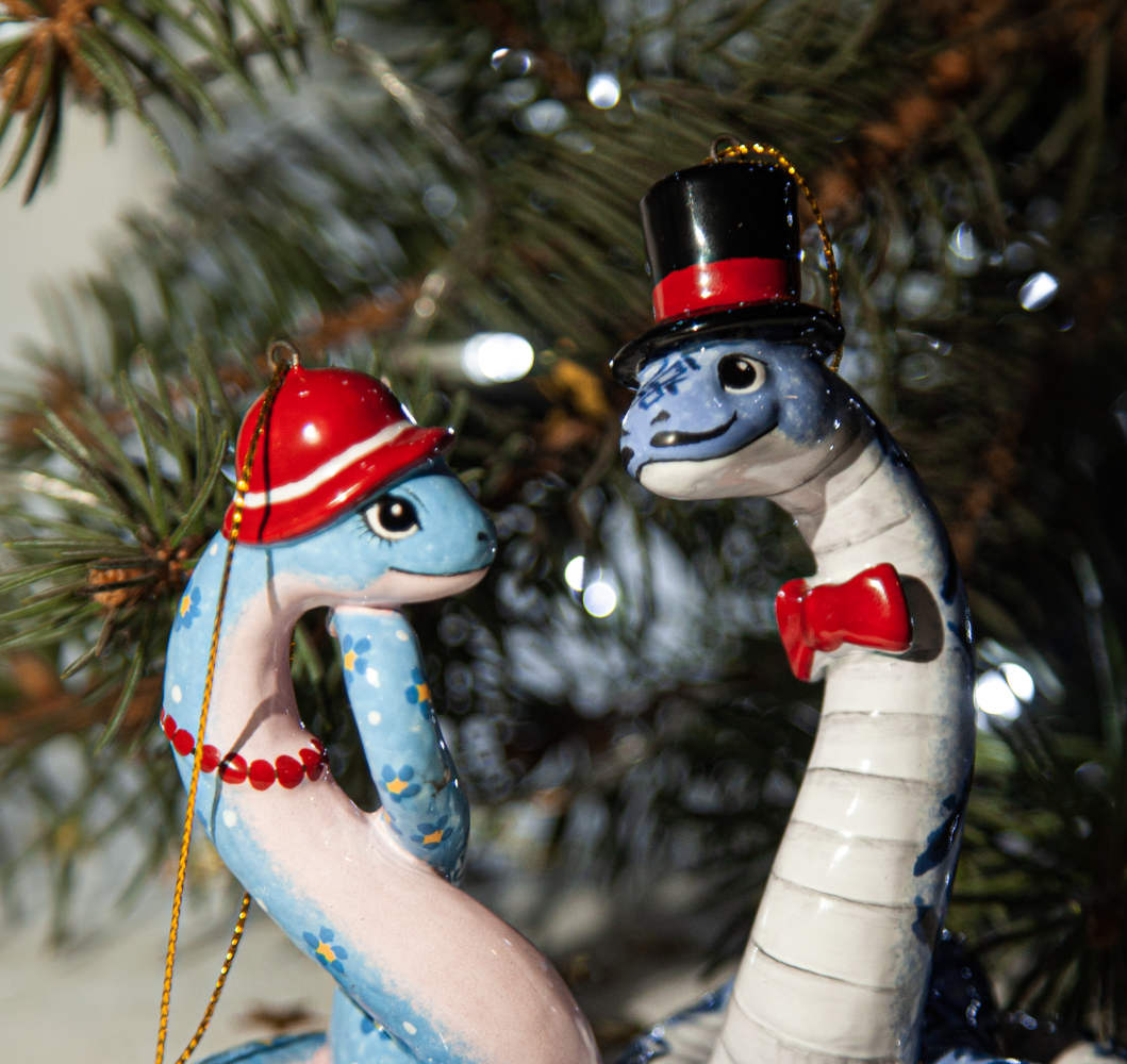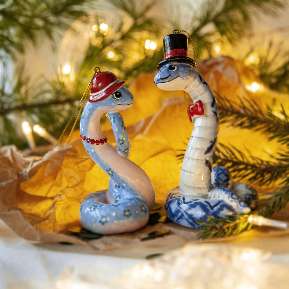 “”Змейка в шляпке”” – прекрасно украсит новогоднюю елку, а также станет необычным подарком для друзей, коллег и коллекционеров керамики. Он расскажет о вашем тонком вкусе и оригинальности, а ее загадочность – прекрасное начало нового года.”