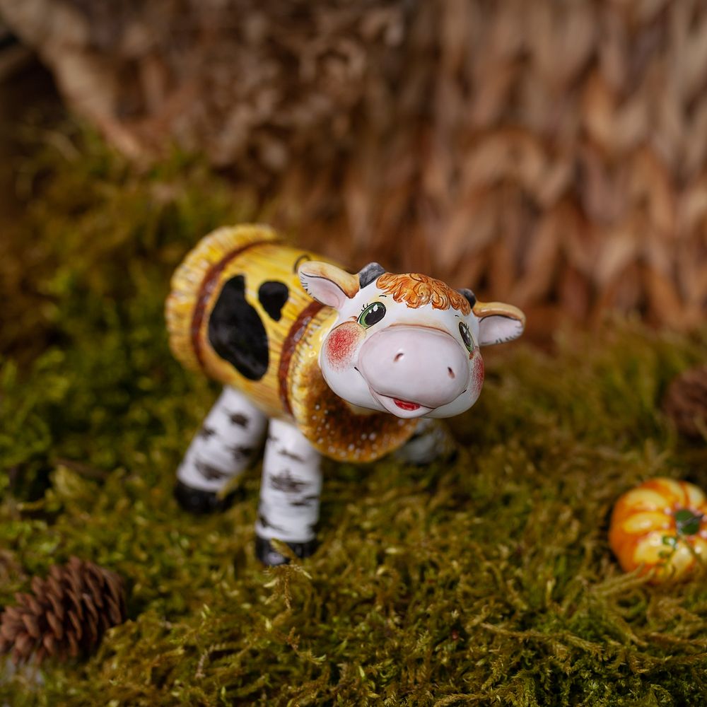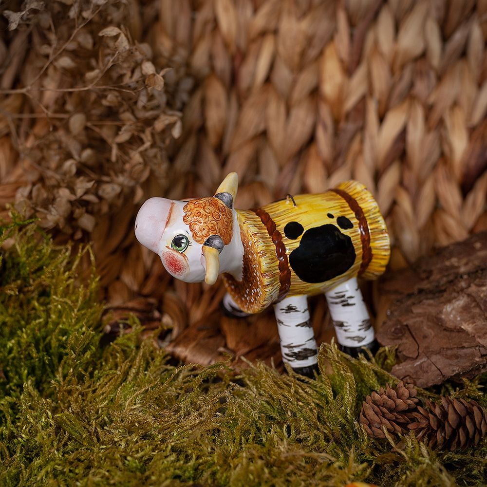 Изделие ручной работы входит в коллекцию Символы Года и представляет собой фигурку соломенного бычка – обаятельного доверчивого теленка. Это очаровательное изделие будет чудесным украшением для новогодней елочки, милым подарком родным и близким, презентом коллегам или партнерам, особенно в год Быка.