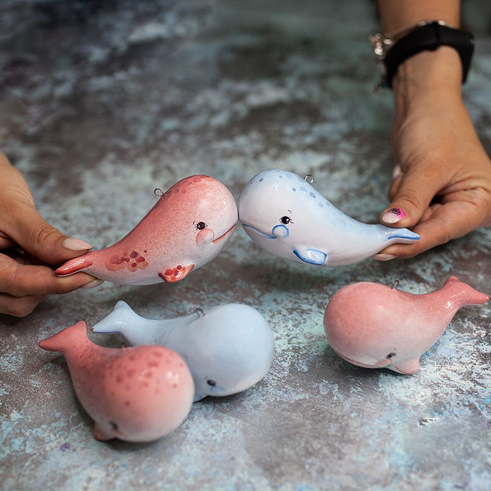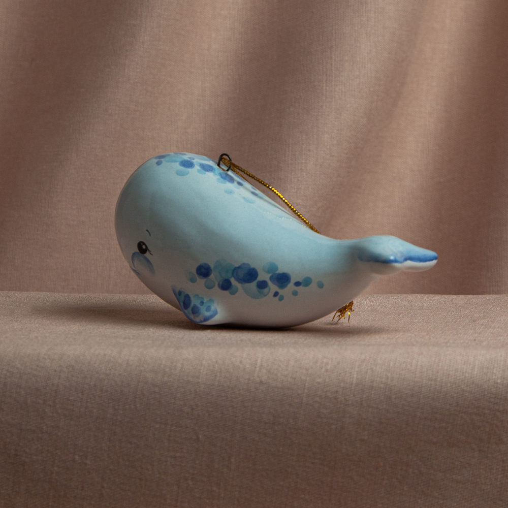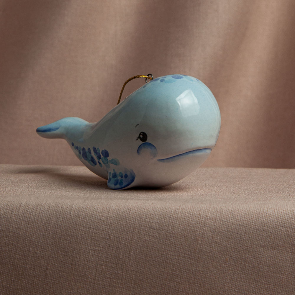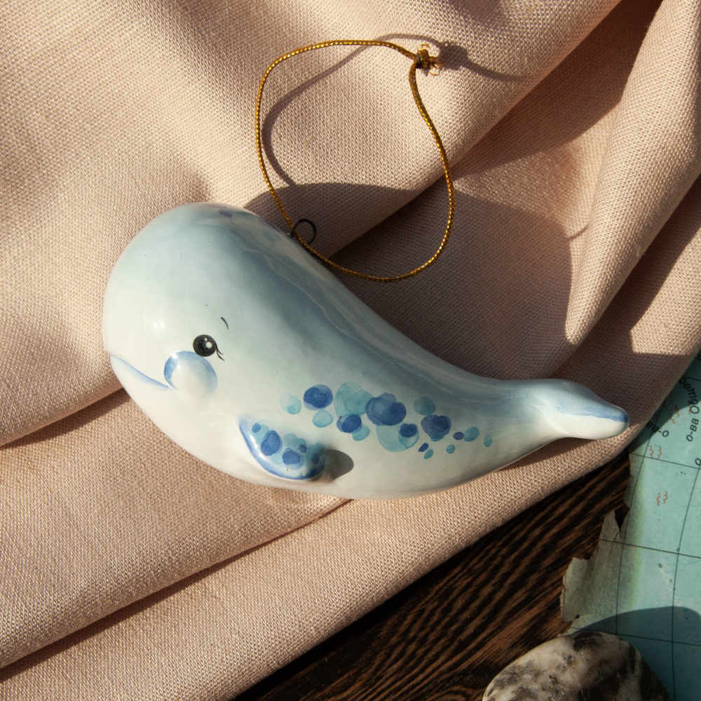 Это изделие ручной работы представляет собой фигурку маленького симпатичного голубого китенка. Кит – очень благоприятный символ спасения, сохранения и созидания, поскольку вся жизнь появилась из воды. Китенок прекрасно украсит новогоднюю елочку, станет чудесным подарком на Новый год, а также на любой другой праздник.