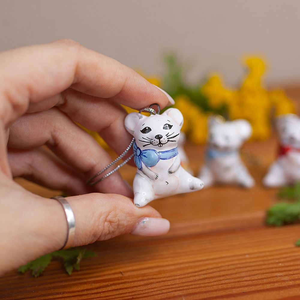 Данное изделие ручной работы представляет фигурку милого мышонка с бантиком. Именно это животное начинает цикл Восточного календаря. Мышь считают символом индивидуализма, работоспособности и продуктивности, символом семейственности, символом инвестиций. Фигурка мыши будет особенным акцентом в интерьере. Мышонок принесет удачу, будет интересным украшением новогодней елочки и замечательным подарком людям, рожденным под этим знаком, или всем – к Новому году и Рождеству, особенно в год Мыши.