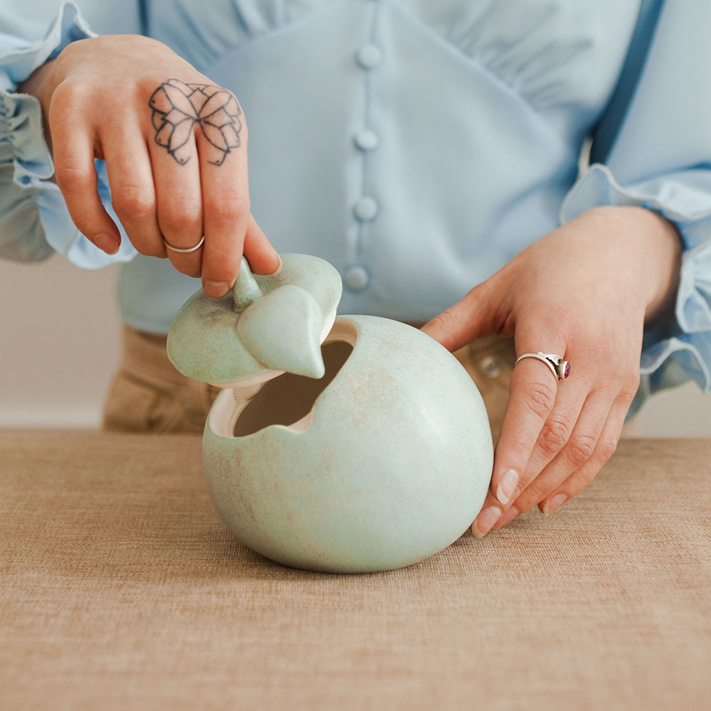 Ёмкость “Яблоко” – изделие ручной работы, представляет собой сосуд для хранения пищевых продуктов. Емкость станет прекрасным дополнением к интерьеру вашей кухни. Ее необычная расцветка и классическая форма добавят уюта и оригинальности при сервировке стола. Благодаря возможности мыть изделие в посудомоечной машине или с использованием специальных моющих средств, вы можете легко и удобно поддерживать его в чистоте и сохранять первоначальный вид. Прекрасный подарок для любителей не только красивой посуды, но и ценителей уникальных вещей.