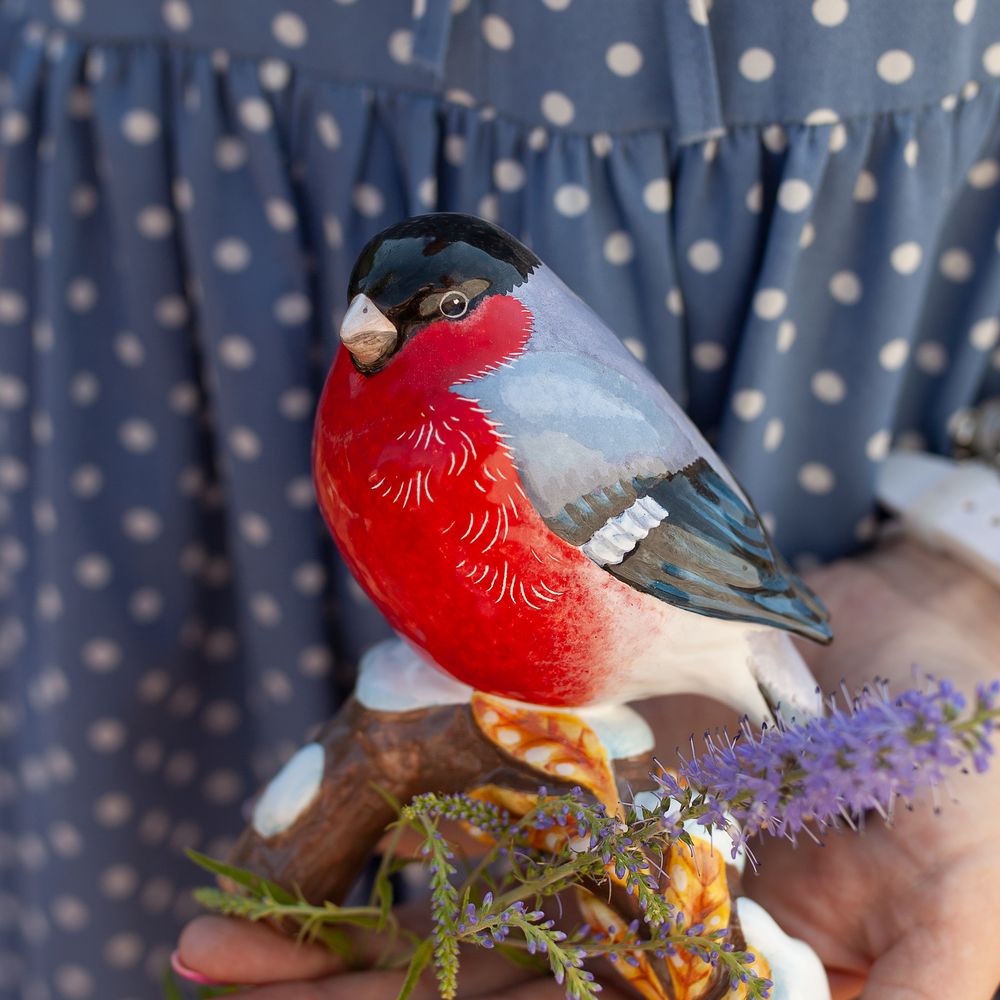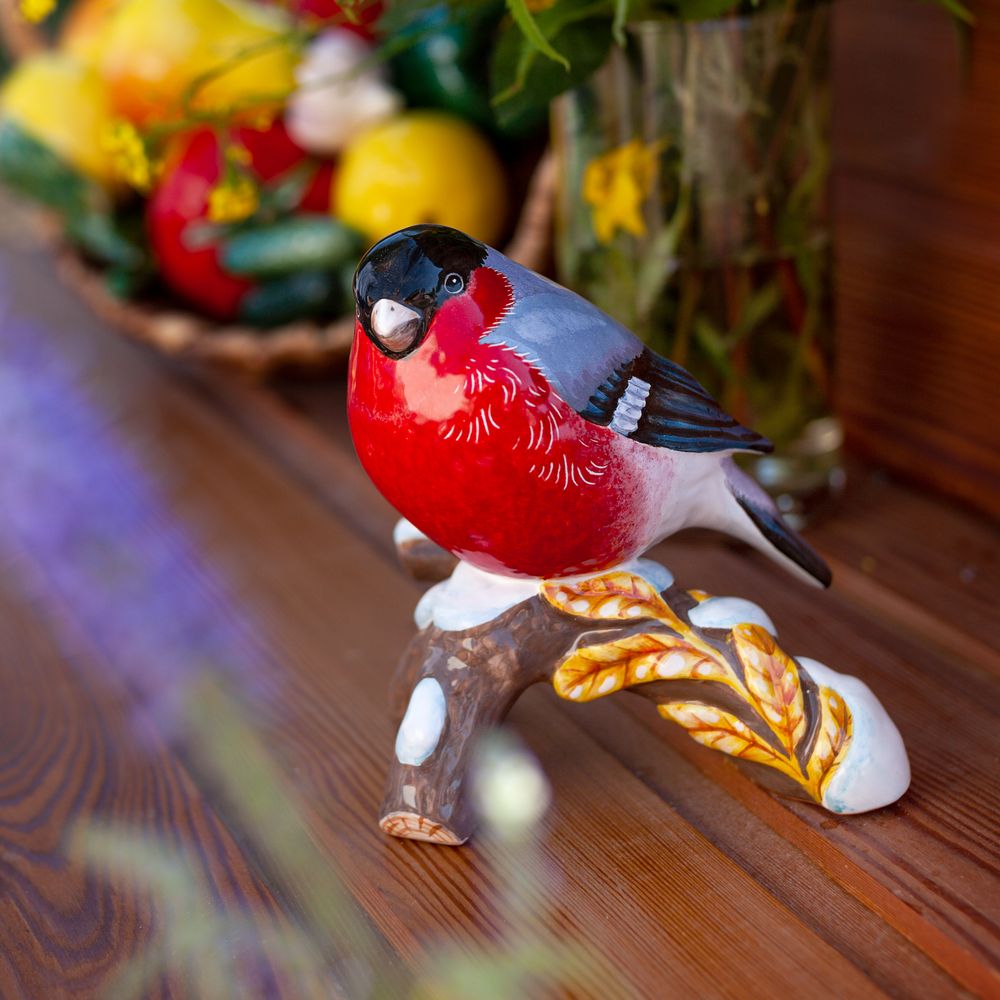 Фигурка “Снегирь на ветке” выполнена в технике майолика и украшена ручной художественной росписью. Снегирь является символом мудрости, спокойствия и терпения, из-за их уникальной способности переживать даже самые лютые холода. Эту птичку вряд-ли заметишь летом, а зимой он показывает себя во всей красе. Снегирь традиционный персонаж зимних рассказов и новогодних открыток, а еще символ русской зимы, и привлекает внимание своей красотой и яркостью. Алая грудка и изящные детали делают эту фигурку эффектным украшением. Снегирь прекрасно впишется как украшение для новогодней елки, создавая атмосферу праздника и уюта. Это изделие может стать прекрасным подарком для близких, коллег или друзей, радуя их своей красотой и оригинальностью. Кроме того, оно будет радовать коллекционеров уникальными и ручной работы предметами.