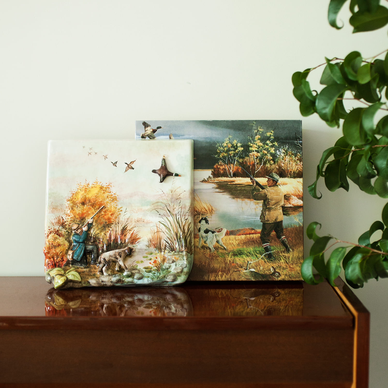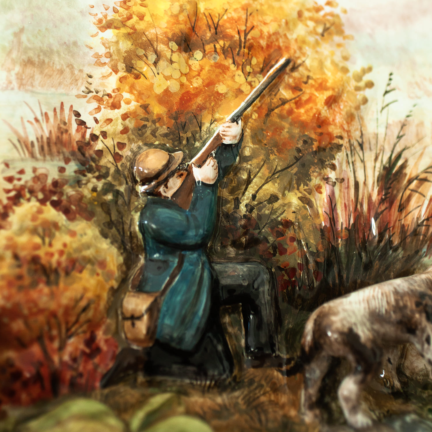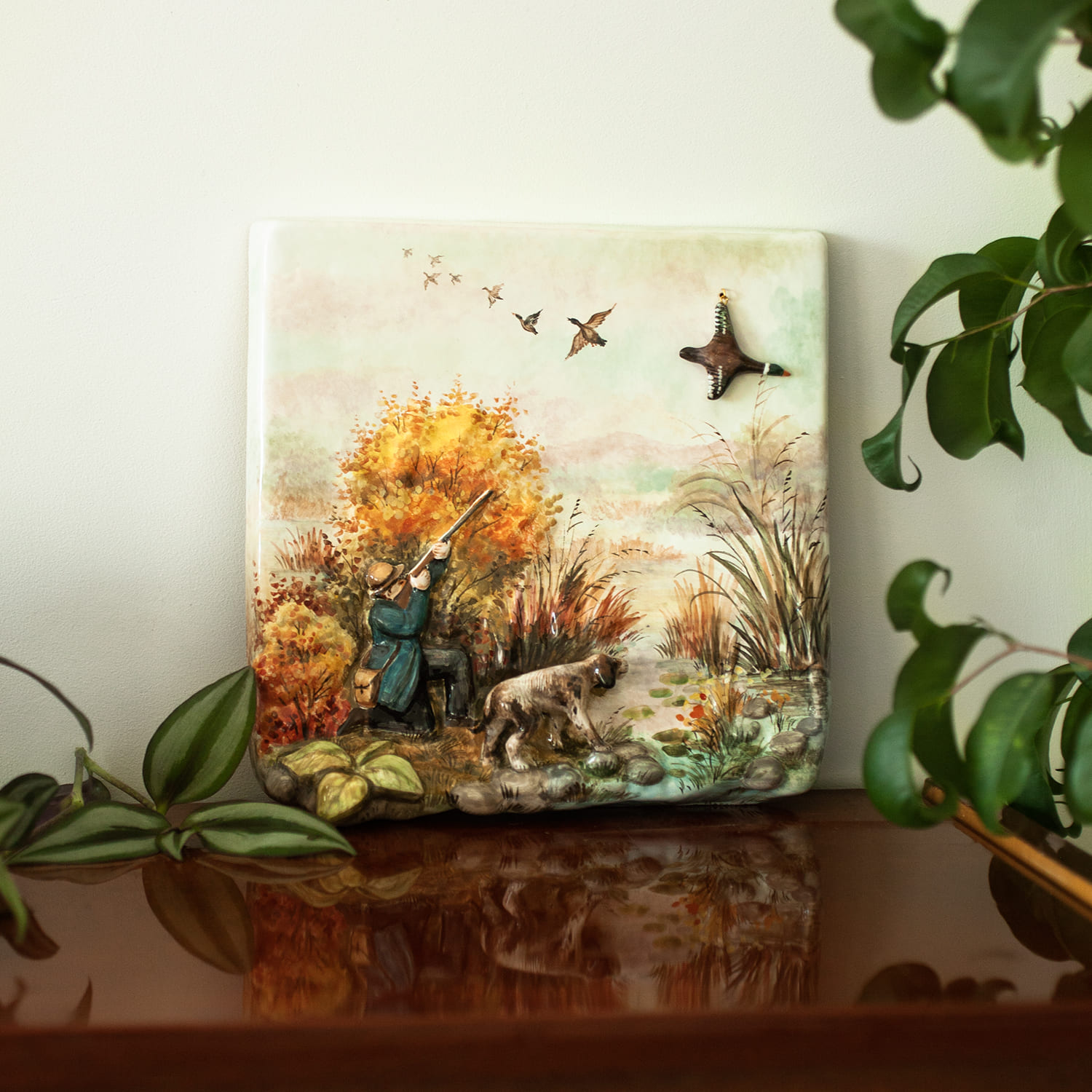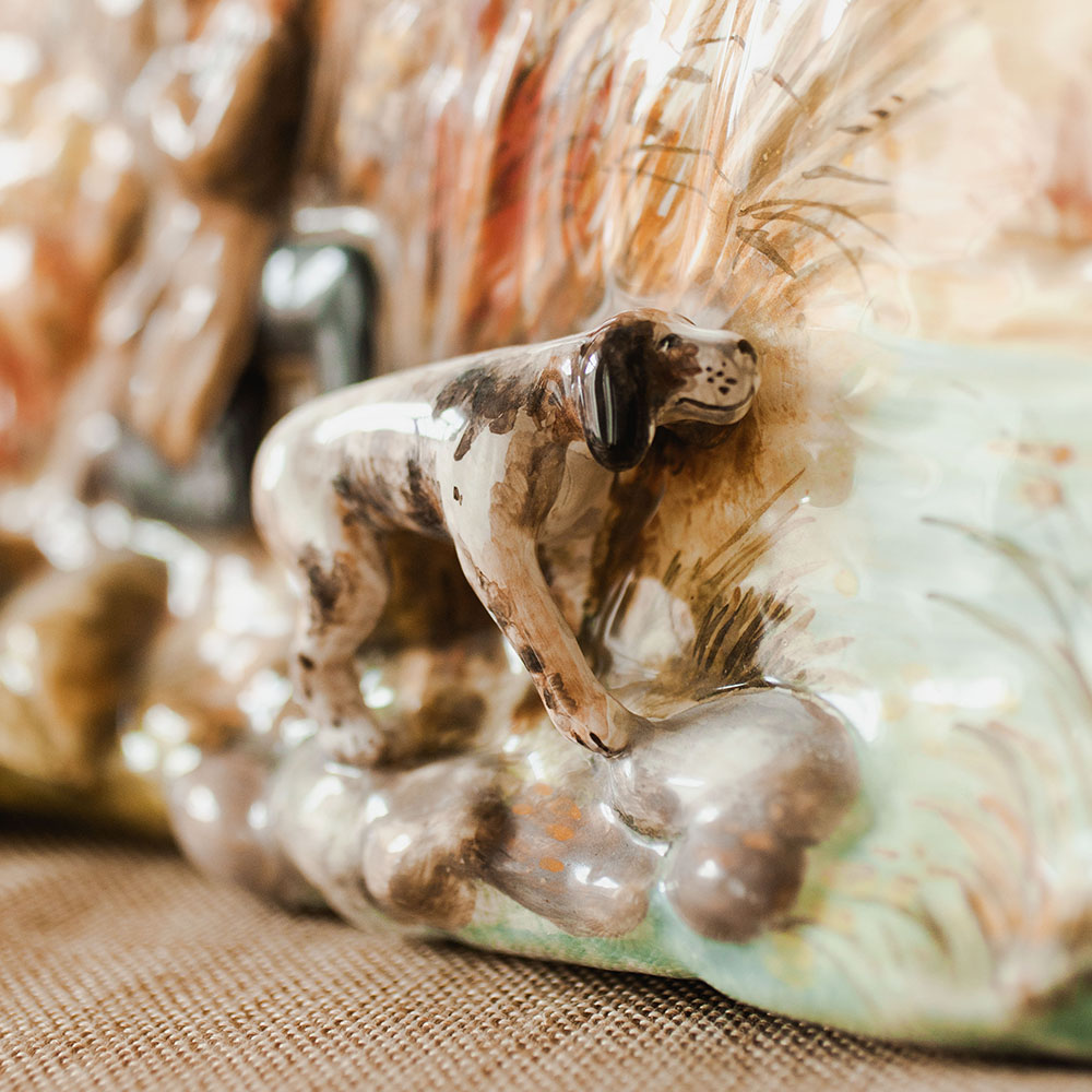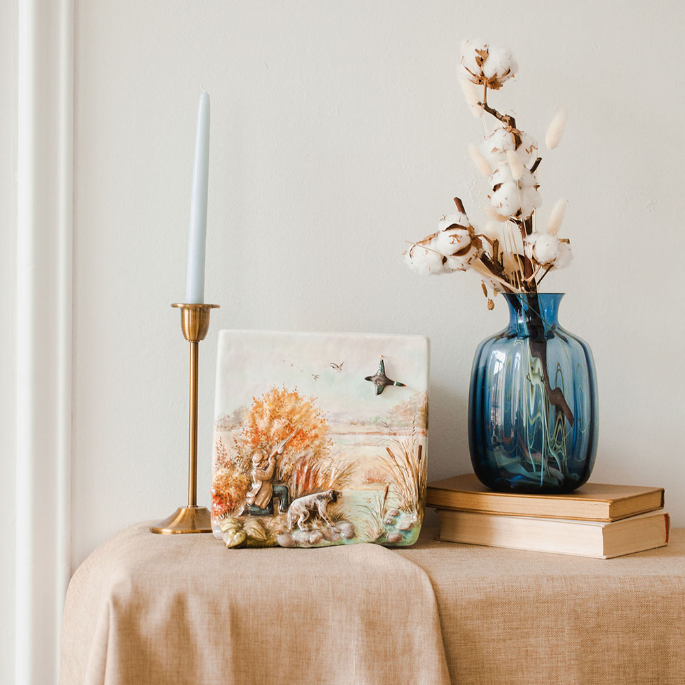 Керамический рельеф с сюжетом “”Охота””, изготовлен в технике майолика и полностью расписан вручную, с тщательной проработкой каждой детали. Имея свой неповторимый характер и уникальную роспись, он станет великолепным украшением интерьера и памятным семейным наследием. Это эксклюзивный подарок для любителей охоты, а также достойным экспонатом в коллекции ценителей керамических изделий ручной работы.