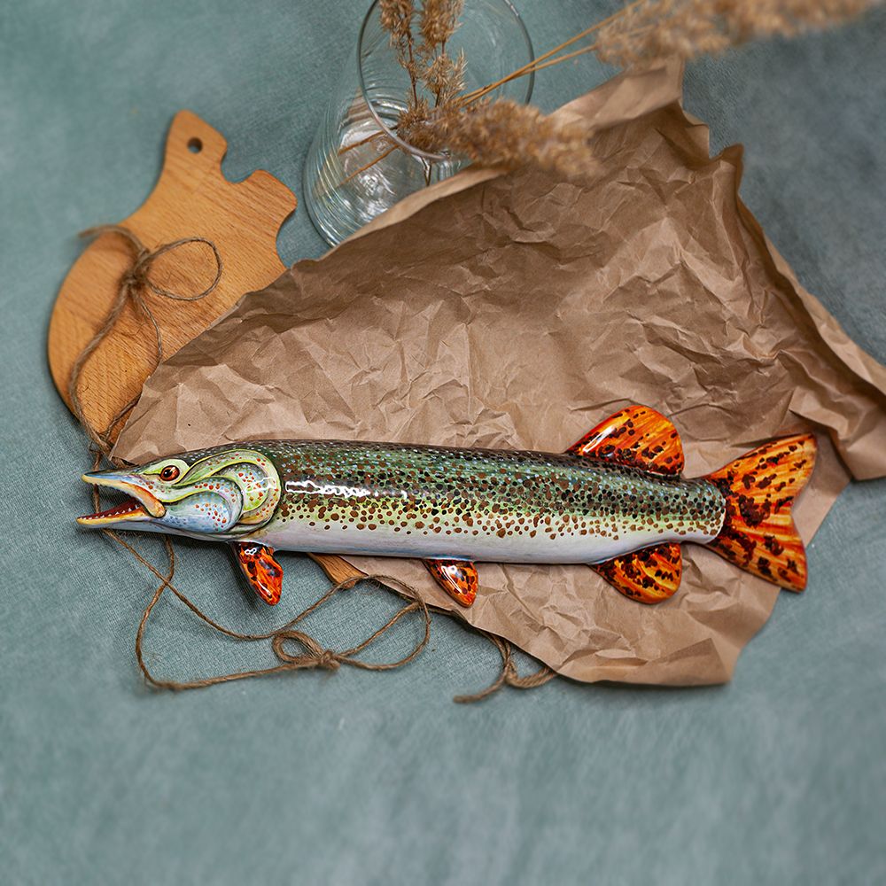 Рельеф “Щука” (большой) изготовлен в технике майолика и украшен ручной художественной росписью. Художник искусно и с любовью изобразил этого хищного и узнаваемого обитателя вод. Настенный декор “”Щука”” не только порадует любителей рыбалки, но и станет украшением для интерьера, придавая помещению атмосферу уюта и оригинальности. Этот рельеф будет отличным подарком, который подчеркнет тонкий вкус дарителя.