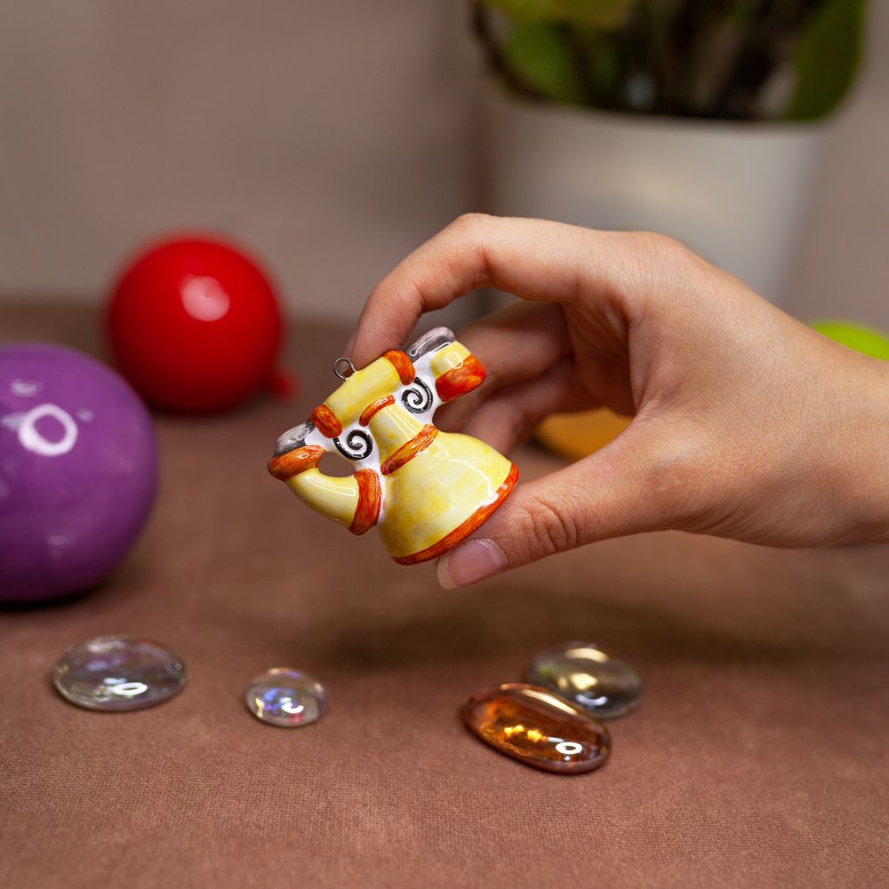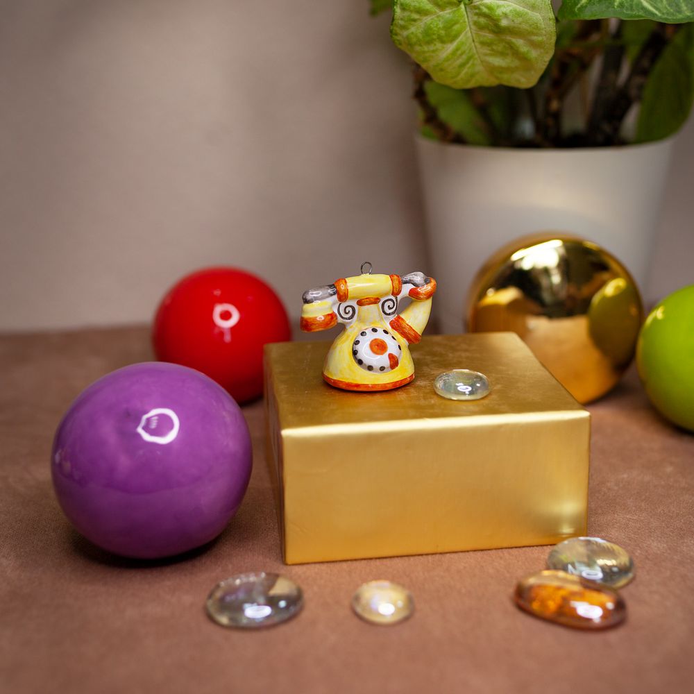 Елочный мини подвес “”Телефон””, изготовлен в технике майолика, украшен ручной художественной росписью и входит в набор елочных украшений “”Ретроштучки””. Каждая деталь изделия выполнена вручную с особым вниманием, что придает ему неповторимость и уникальность. Этот винтажный телефон несомненно станет прекрасным дополнением к вашей коллекции ретро предметов и создаст атмосферу уюта в вашем доме. Мини подвес “”Телефон”” – оригинальное украшение для новогодней елки и коллекционный подарок для любителей необычных керамических изделий.”