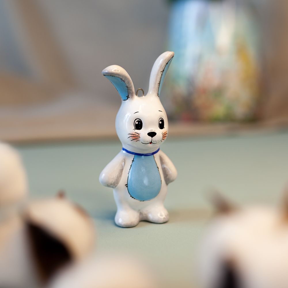 Подвес “”Плюшевый зайка””, выполнен в технике майолика и украшен ручной художественной росписью. Плюшевый зайка – коренной обитатель детской комнаты. Он с важностью выполняет роль хранителя снов своего ребенка, главный советчик и помощник в домашних и школьных делах. Самый лучший лучший друг ребенка. Трогательный зайчик может стать украшением для детской комнаты, гостиной или новогодней ёлки. Благодаря своему милому облику, он приносит радость и тепло в любой интерьер. Кроме того, этот подвес может стать замечательной игрушкой для вашего малыша, способствуя развитию его фантазии. Фигурка станет замечательным подарком для коллекционеров, любителей животных или просто тех, кто ценит уникальные и ручные изделия.”””