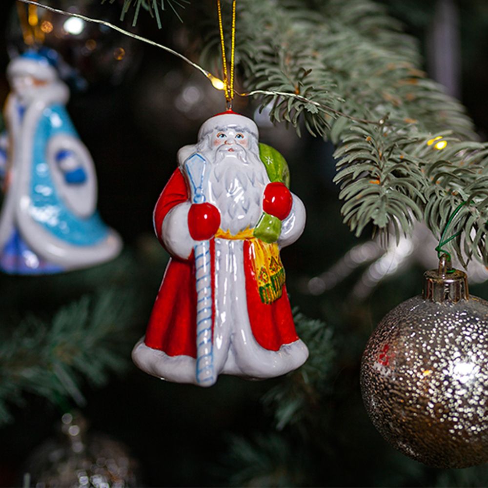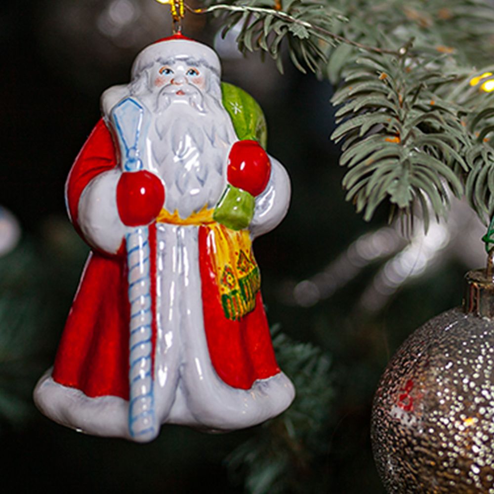 Это изделие ручной работы входит в Набор «Новый год». Наш художник изобразил Деда Мороза в красной шубе с меховой оторочкой, подпоясанным богатым кушаком. На плече у сказочного персонажа мешок с подарками, в руке волшебный посох. Дед Мороз нарисован с длинной роскошной бородой, он легко узнаваем, — его образ сочетается с дарением подарков, веселыми забавами, стихами и танцами. Главный символ праздника, новогодних и рождественских чудес принесет вам радость и обещание зимней сказки. Наш добрый Дед Мороз будет долгожданным гостем в каждом доме, украшением вашей елочной композиции, замечательным подарком вашим друзьям и близким, который сохранит дивные мгновения зимнего торжества на долгие годы.