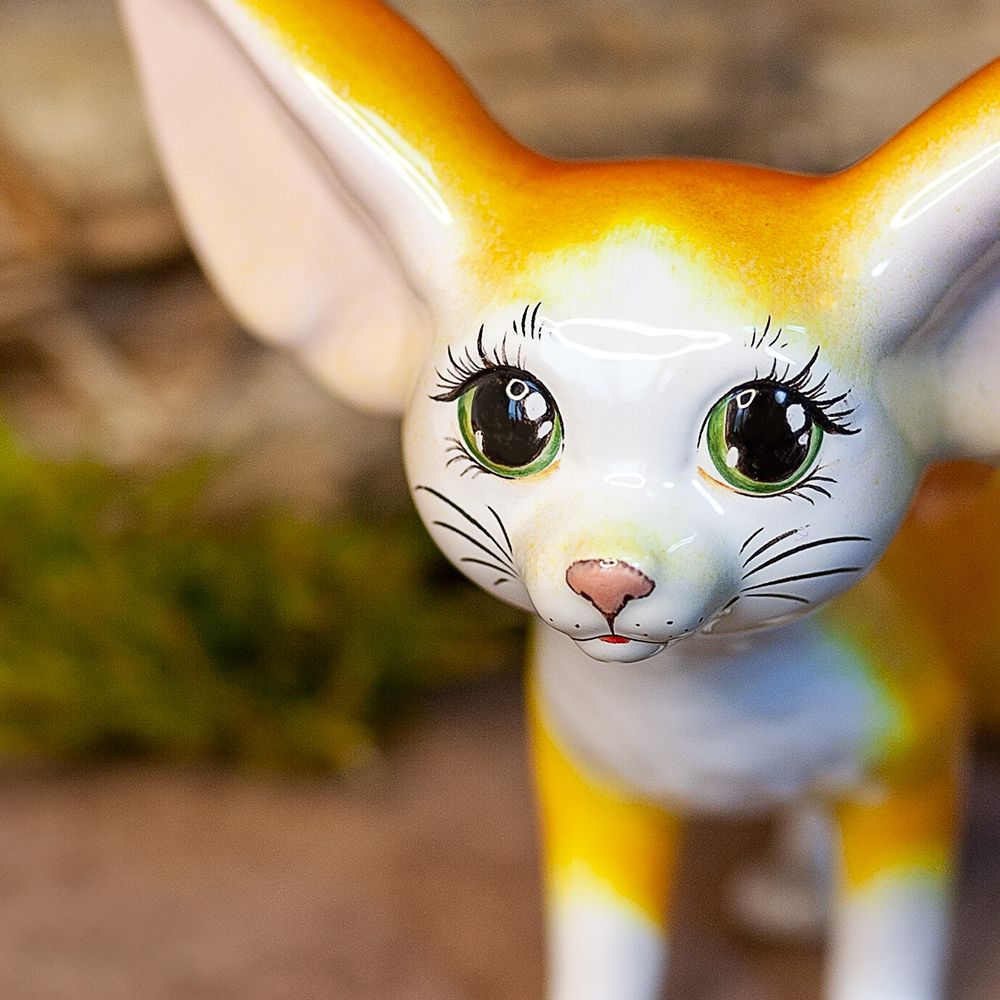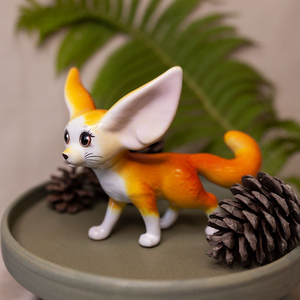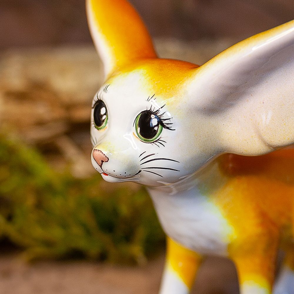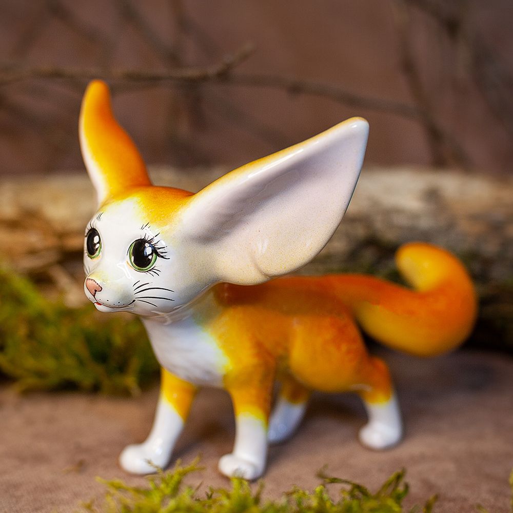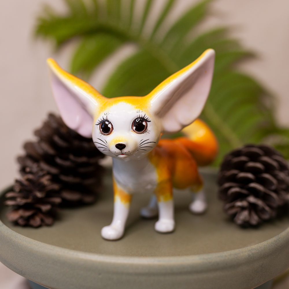 Фигурка “Лисенок Фенек”, выполнена в технике майолика и украшена ручной художественной росписью. Трогательный ясноглазый лисенок, как будто сошел со страниц книги о Маленьком Принце, и хочет нам многое рассказать о жизни, дружбе и любви. А еще это самая маленькая в мире лиса, с самыми большими ушами. Керамическая фигурка станет интересным и неповторимым акцентом в интерьере, украшением вашей коллекции или сувениром, который создаст уют и атмосферу уюта в вашем доме.