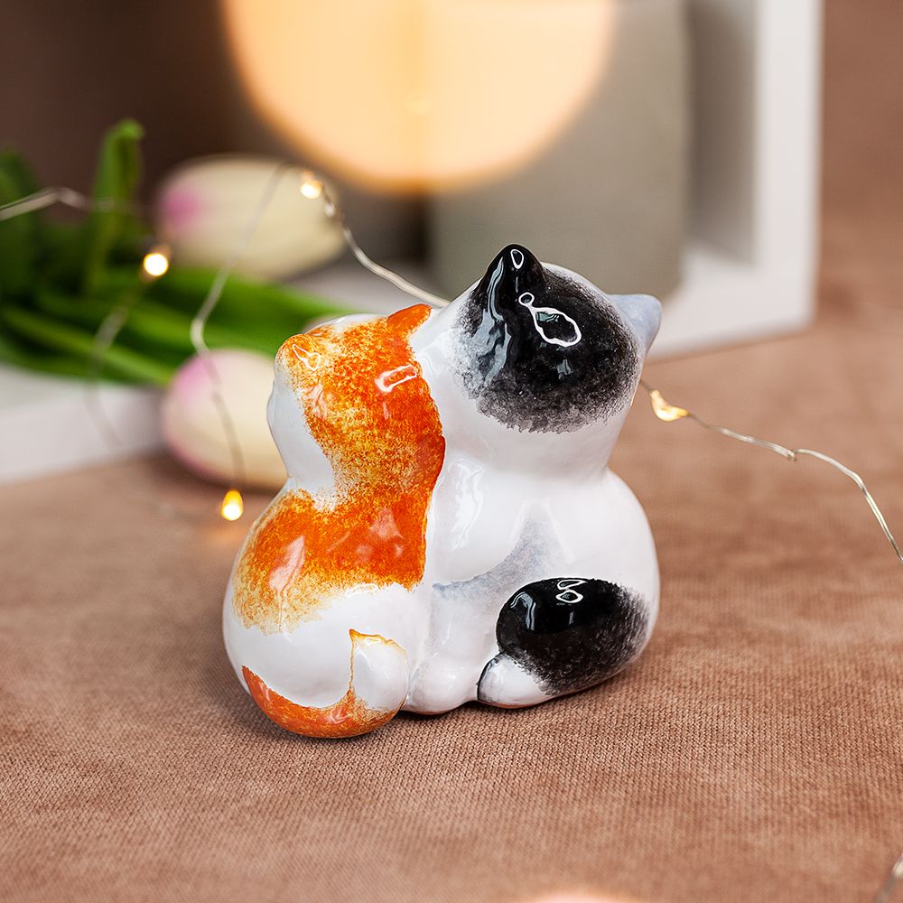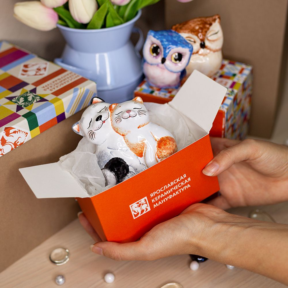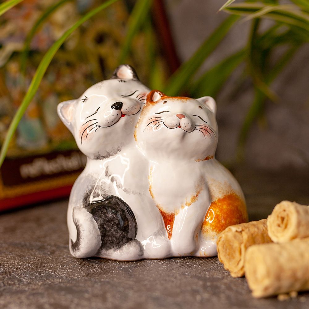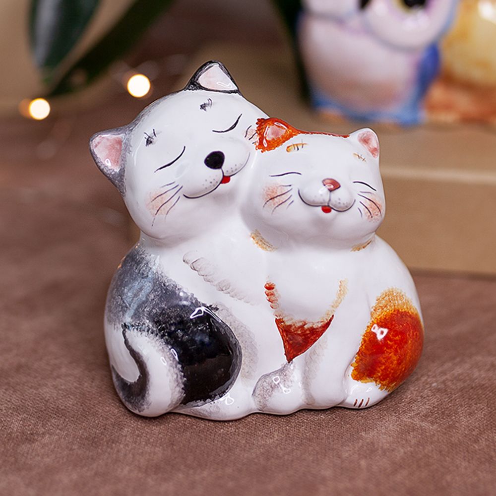 Парная фигурка “Кот с Кошкой “Пушистая любовь”, выполнена в технике майолика и украшена ручной художественной росписью. Очаровательная парочка керамических кота и кошки, которые уютно мурлыкают, наслаждаясь обществом друг друга. Эти милые фигурки станут интересным акцентом в вашем интерьере, добавят уюта и тепла, создадут особую атмосферу радости. Фигурка станет замечательным подарком для коллекционеров, любителей животных или просто тех, кто ценит уникальные и ручные изделия.