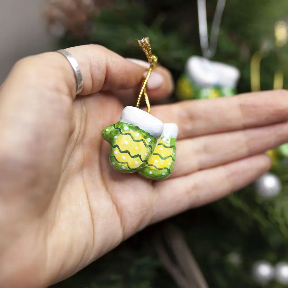 Подвес “Рукавички” выполнен в технике майолика, украшен ручной художественной росписью и входит в коллекцию украшений “”Для маленькой ёлочки””. Эти яркие рукавички могут стать не только украшением для елочки, но и стильным аксессуаром. Они могут использоваться в качестве броши, кулона, брелока или даже элемента декора в интерьере. Такой подарок будет радовать своего обладателя и напоминать о празднике и уюте. Соберите всю коллекцию мини-украшений, чтобы малышка-елочка была самой красивой и нарядной.”