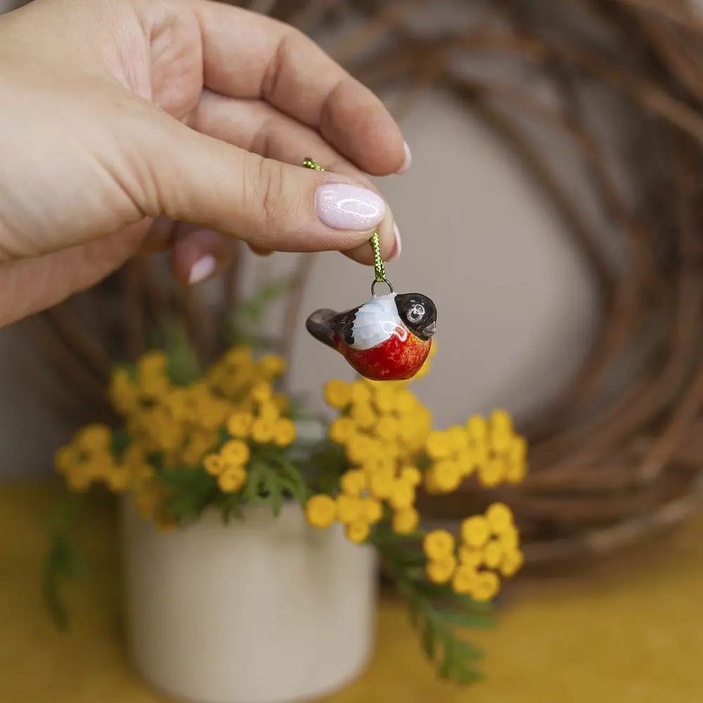 Подвес “Снегирь” выполнен в технике майолика, украшен ручной художественной росписью и входит в коллекцию украшений “Для маленькой ёлочки”. Снегирь традиционный персонаж зимних рассказов и новогодних открыток, а еще символ русской зимы, и привлекает внимание своей красотой и яркостью. Соберите всю коллекцию мини-украшений, чтобы малышка-елочка была самой красивой и нарядной.