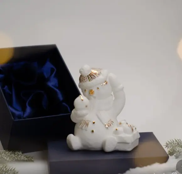 Фигурка Снеговик с шаром фарфор, золото с коробкой