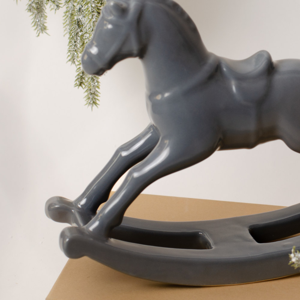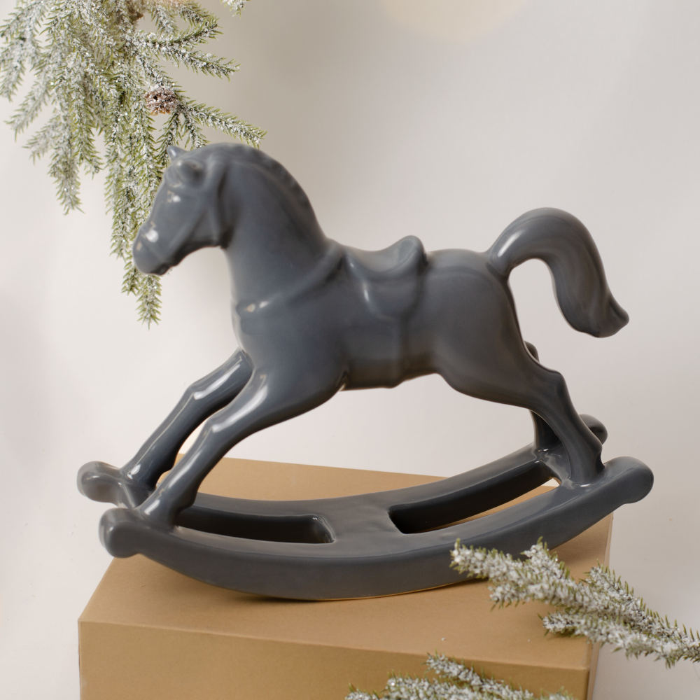 Интерьерная фигурка “Лошадка качалка” выполнена вручную из белой глины и украшена однотонной сеой глазурью, что придаёт ей лаконичный и выразительный внешний вид. Лошадь на протяжении всей истории человечества была верным спутником, символизируя интеллект, мудрость, ум и стремительность. Этот образ олицетворяет упорство и быстроту мысли, а также знатность и свет, что делает фигурку не только красивым украшением, но и мощным символом.