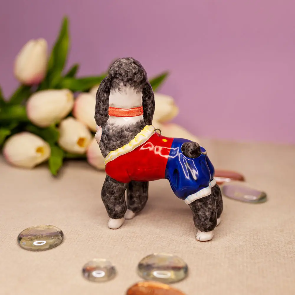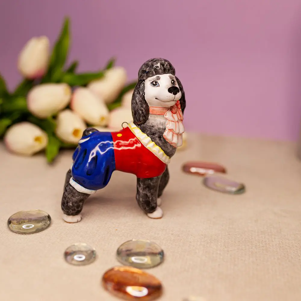 Изделие представляет фигурку пуделя Артемо́на — героя известной сказки, верного, доброго и заботливого друга Мальвины. Он щегольски одет, отличается благородным характером и храбростью. Изделие интересно для оформления интерьеров, будет эксклюзивным подарком и замечательным коллекционным изделием.
