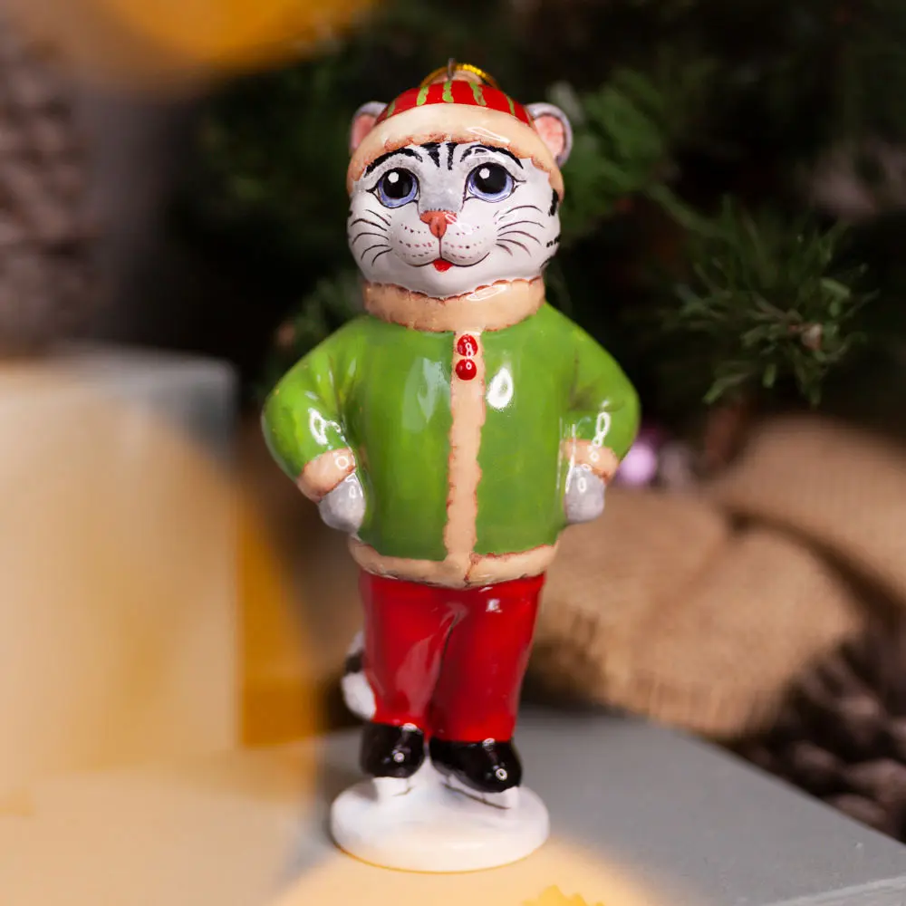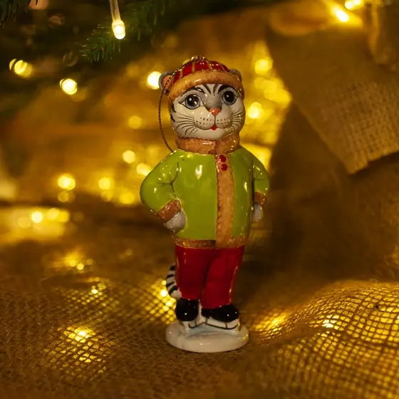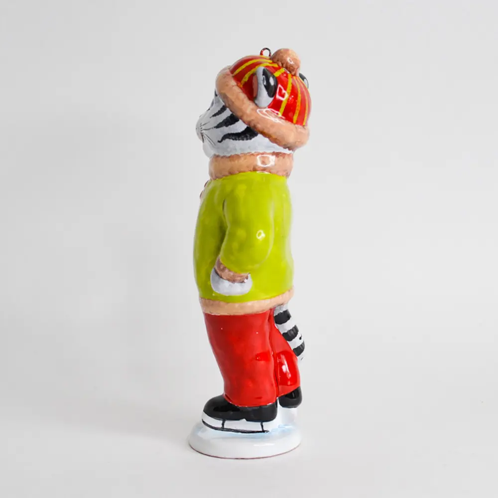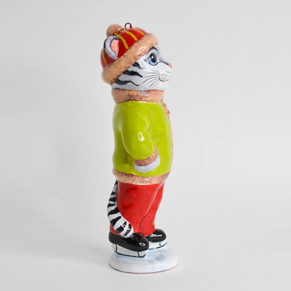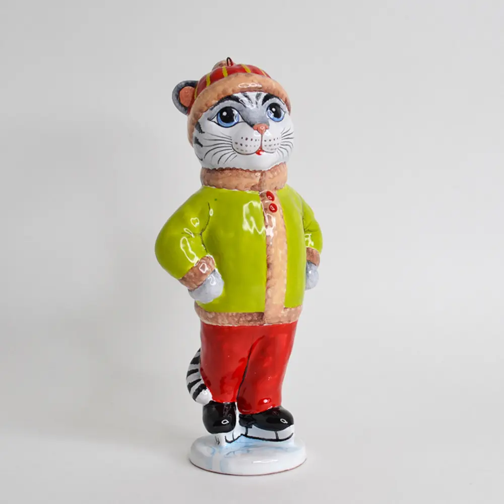 Данное изделие ручной работы входит в коллекцию Символы Года и представляет фигурку уверенного в себе мальчика тигра на коньках, готового выйти на лед. Художник использовал яркую палитру глазурей, чтобы передать праздничное настроение. Эксклюзивная фигурка станет особенным акцентом в интерьере, ярким украшением новогодней композиции и замечательным подарком к Новому году и Рождеству, особенно в год Тигра.
