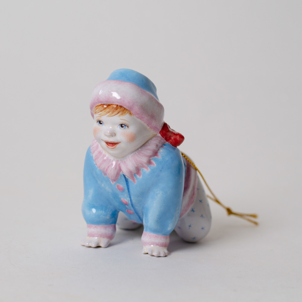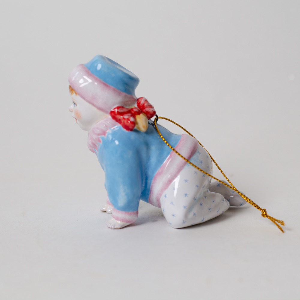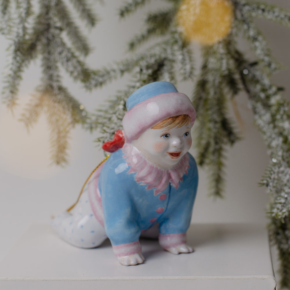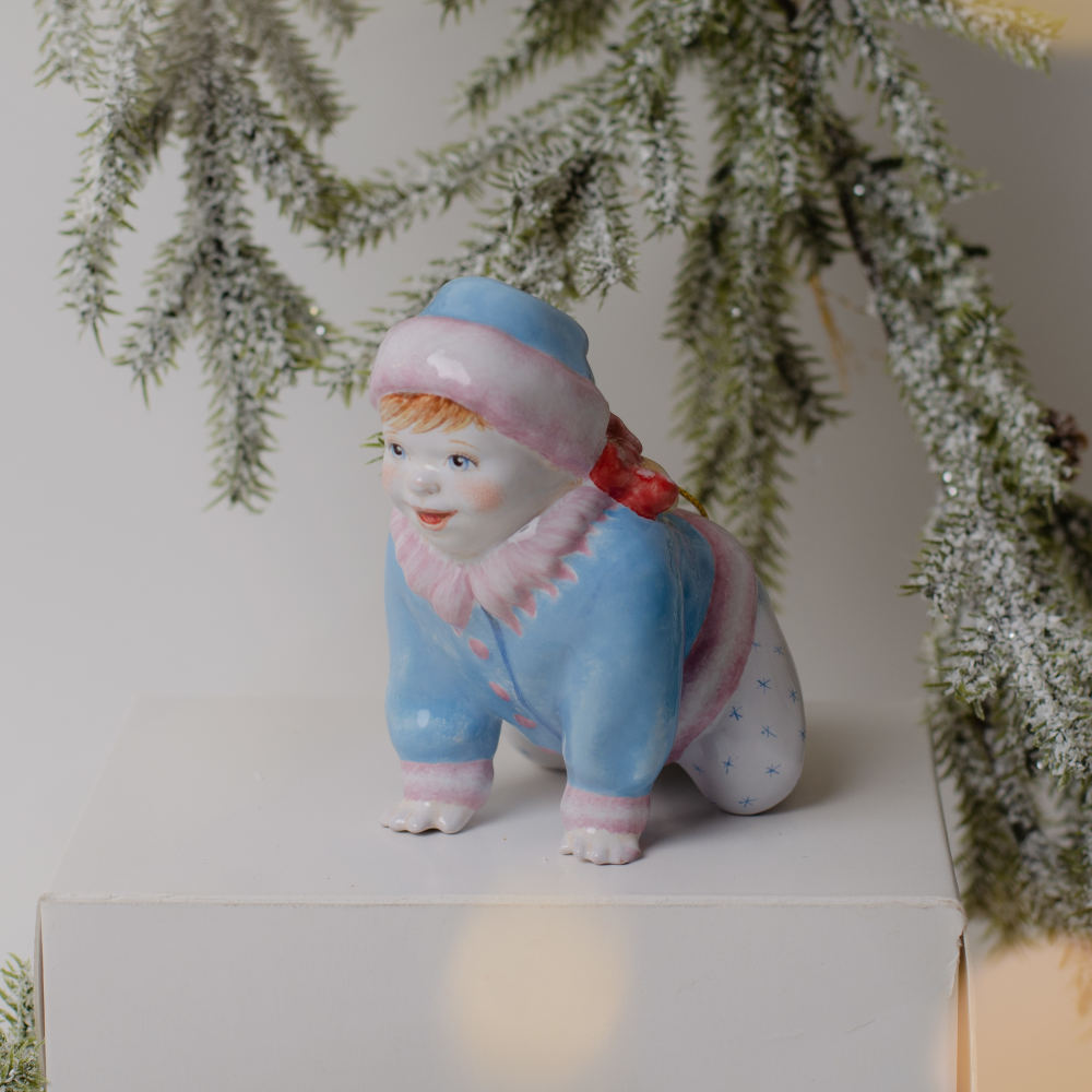 Эксклюзивное изделие входит в коллекцию “Малыши”. Малышка в костюме Снегурочки смотрит на мир широко распахнутыми голубыми глазами. Фигурка крохи завораживает: в ней столько жизни, радости и счастья. Гармоничное цветовое сочетание, реалистичное исполнение этой красивой игрушки подарят праздничное настроение, вы сможете украшать свою зеленую красавицу много лет, эту игрушку можно передать по наследству, она сможет стать статусным подарком вашим друзьям и близким.