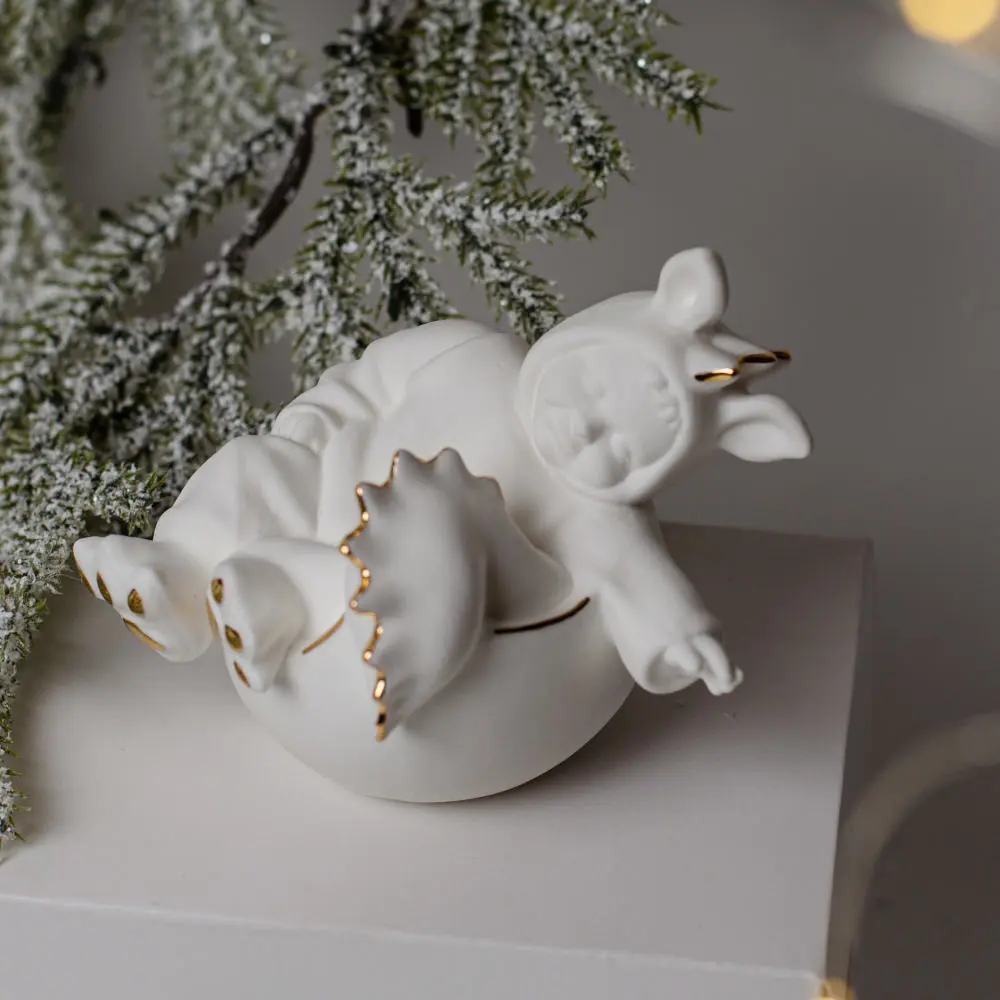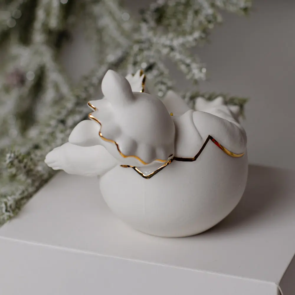 Ёлочная игрушка малыш-Дракоша малый (фарфор, золото)