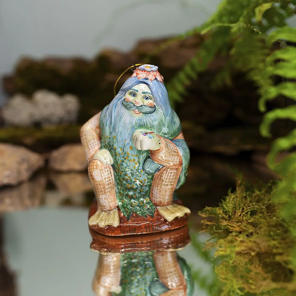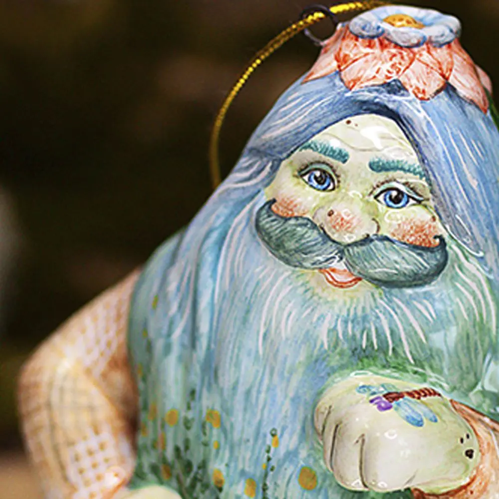 Изделие входит в коллекцию Сказки и представляет фигурку Водяного с усами, длинной сине-зелёной бородой, увешанного тиной – настоящего повелителя рек и озер, которому подвластны все рыбы, русалки и другие водные духи. Однако, мы видим перед собой не грозного царя, а обаятельного добряка с легкой ухмылкой на лице. Переданные в керамике характер и эмоции никого не оставят равнодушными. Интересное изделие для оформления интерьеров, необычный подарок, порадует оно любителей сказок и коллекционеров.