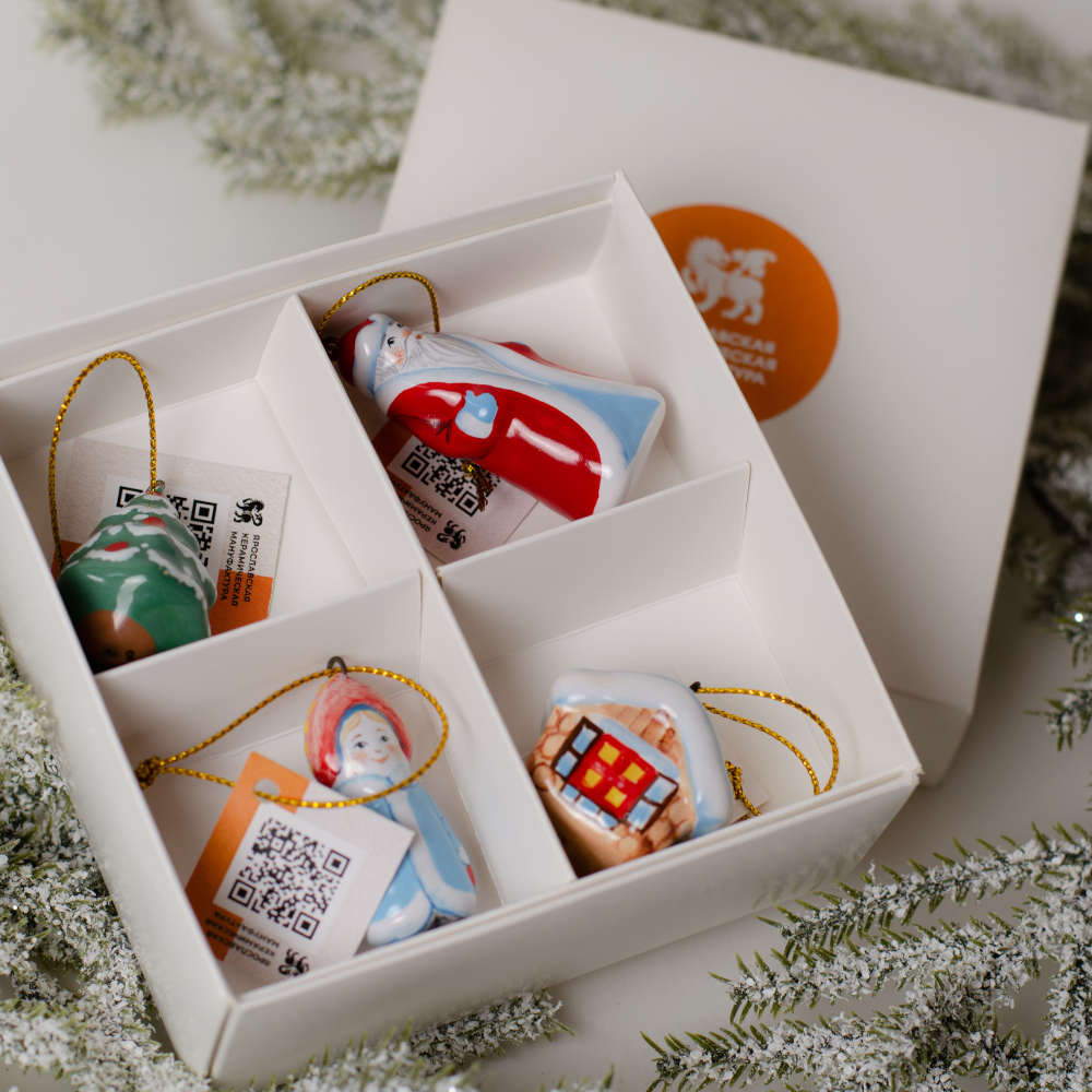 В набор елочных украшений №11 входят четыре изделия: Снегурочка, Дед Мороз, Избушка, Елка. Миниатюрные новогодние украшения из коллекции “Игрушки для маленькой елочки”, подарят вашему дому особое очарование и уют праздничного волшебства.