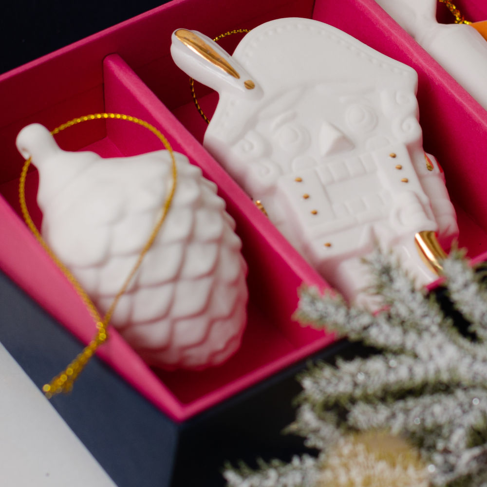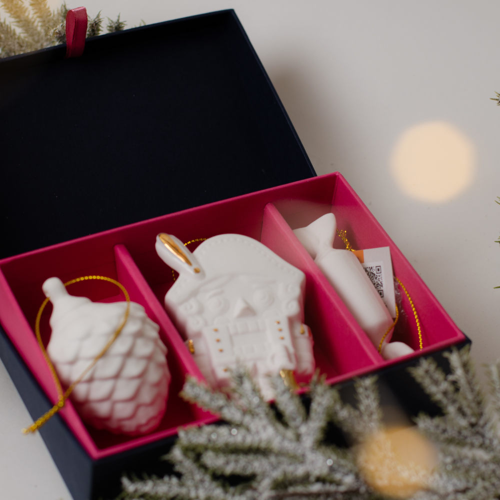 Набор 3 изделий (шишка малая, щелкунчик, конфетка) фарфор