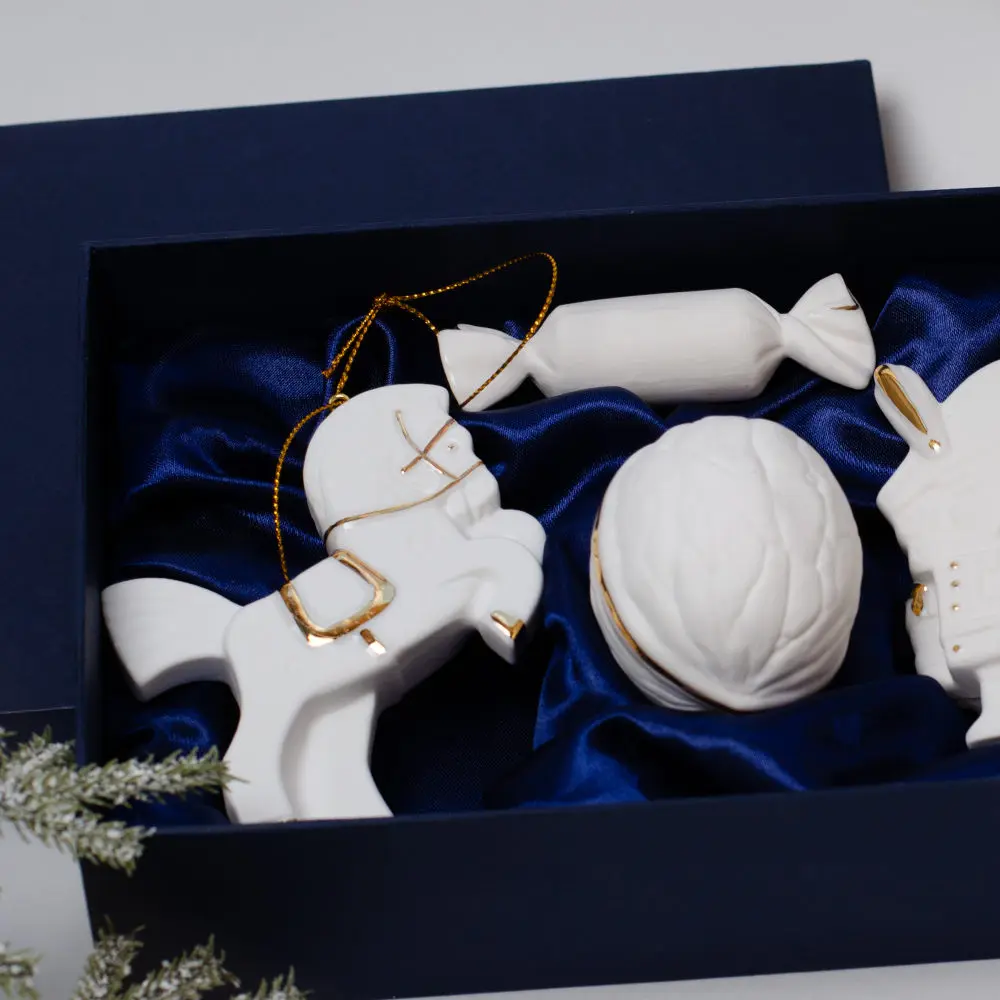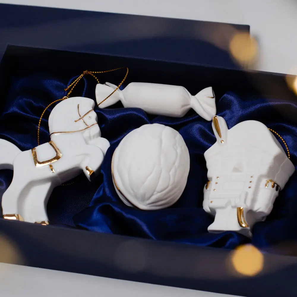 Набор 4 изделия (щелкунчик,лошадка щелкун., орех, конфетка) фарфор