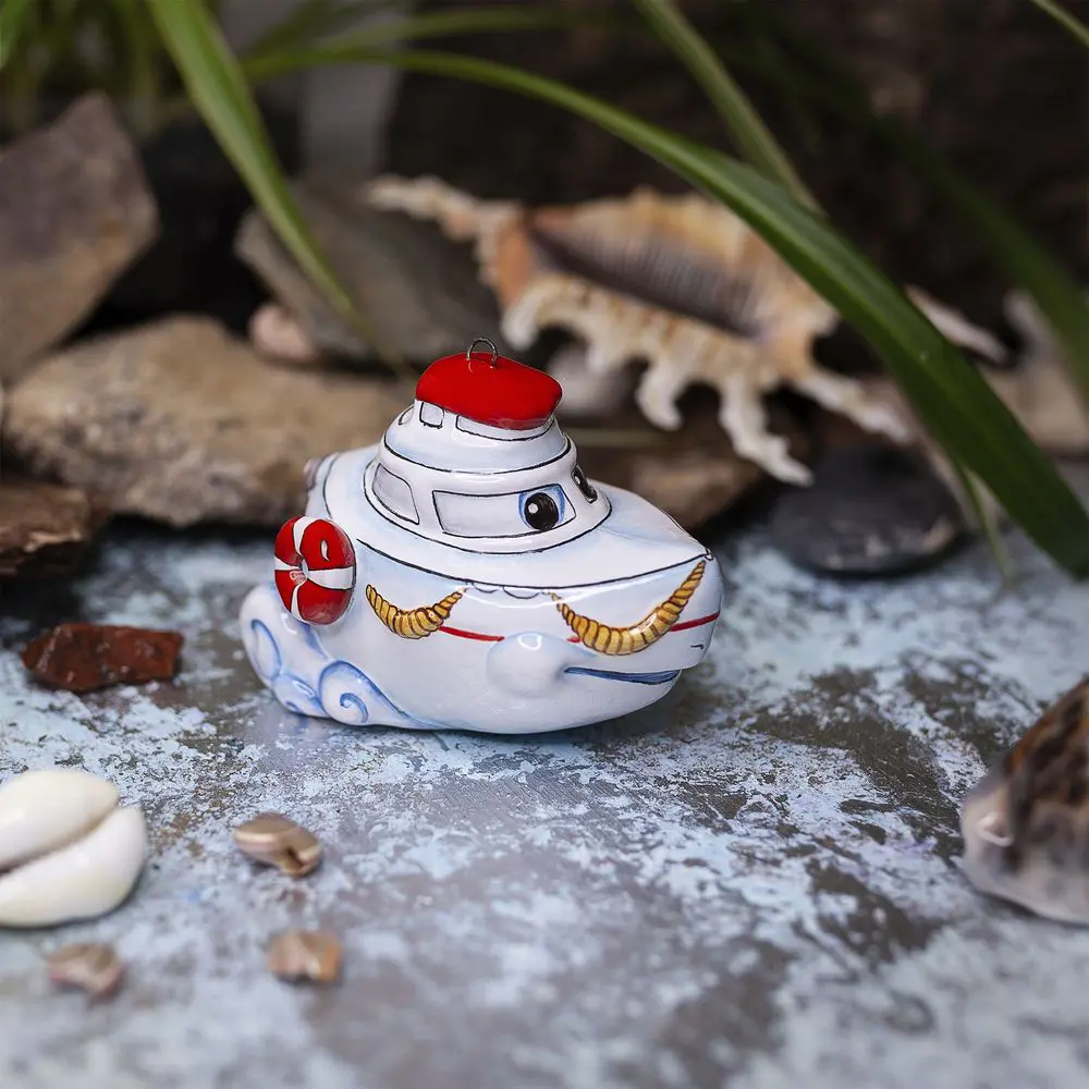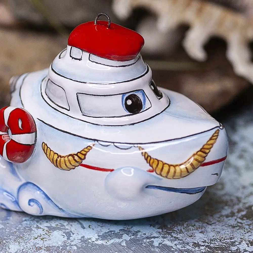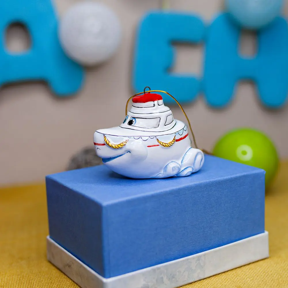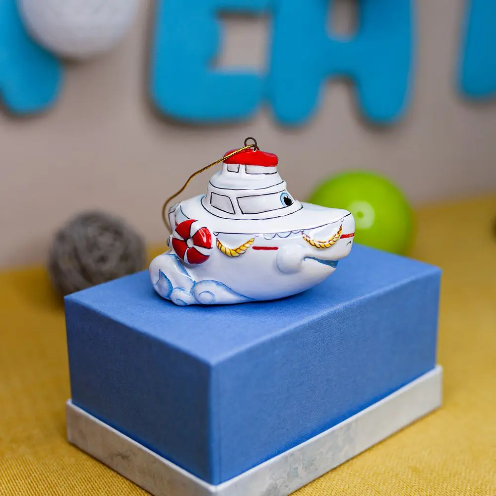 Это изделие ручной работы входит в коллекцию “Весёлый транспорт”. Кто же из мальчишек не мечтал о море и путешествиях? Забавный улыбчивый Катерок украсит любую ёлочку. Станет чудесным подарком на день рождения, 23 февраля, Новый год или любой другой праздник. Порадуйте своего непоседу и соберите всю коллекцию ярких и смешных фигурок.