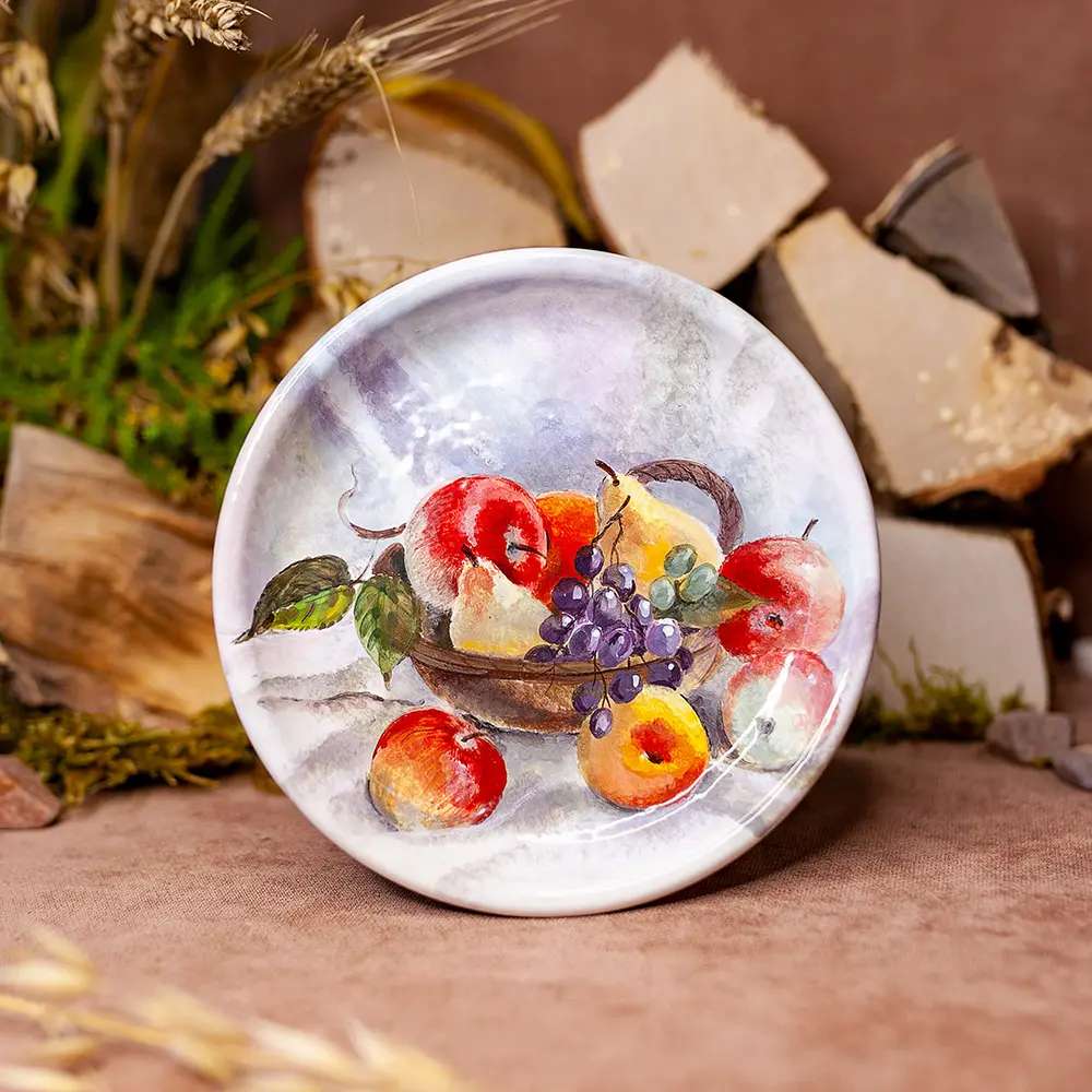 Тарелка изготовлена в технике майолика и полностью расписана вручную. Каждый раз, при создании такого изделия, рисунок будет индивидуален и неповторим, что делает ее по-настоящему уникальным предметом искусства. Живопись, выполненная вручную художником, всегда будет в моде, потому что она передает живую душу и творческий подход к каждому рисунку. Такое изделие не только украсит интерьер, но и принесет эстетическое удовольствие и радость, так как оно неповторимо и уникально. Эта керамическая тарелка с художественной росписью не только будет эффектно смотреться как часть интерьера, но и станет предметом, который доставит радость и удовольствие своему владельцу.