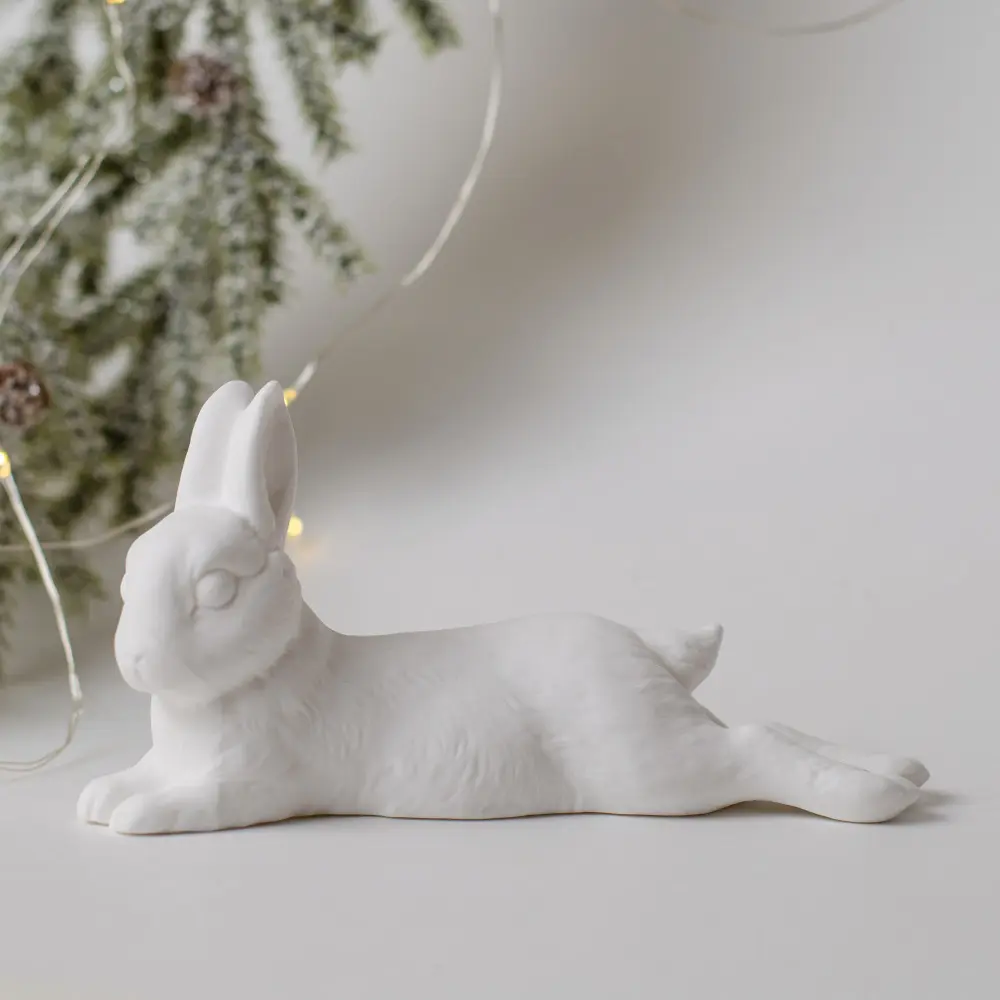 Интерьерная фигурка “Кролик лежа”, изготовленная из фарфора бисквита и детально проработана мастером-скульптором. Выразительные черты мордочки и тонкие линии создают ощущение живого существа, воплощенного в фарфоре.